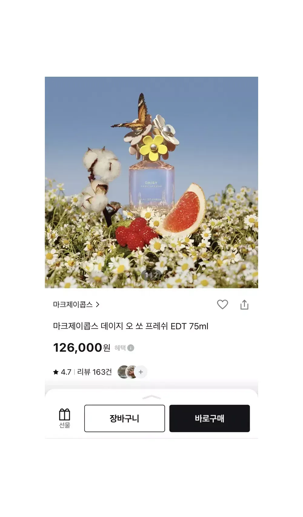 새상품) 마크제이콥스 향수 데이지 오 쏘 프레쉬 EDT 75ml > 뷰티