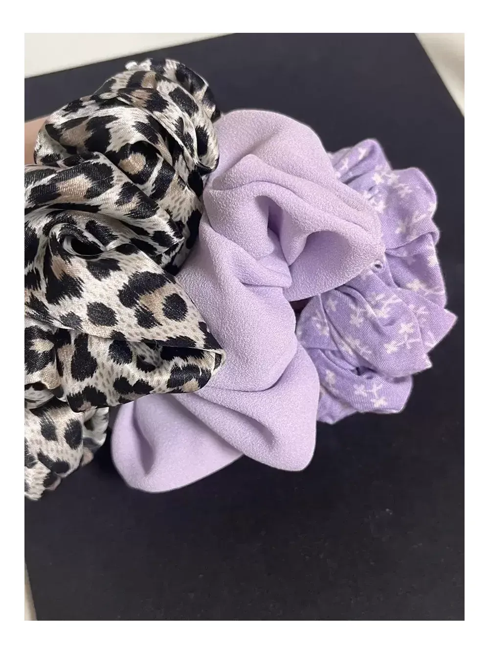 곱창밴드 스크런치 파스텔 연보라 꽃 패턴 무늬 호피 얼룩 > 뷰티