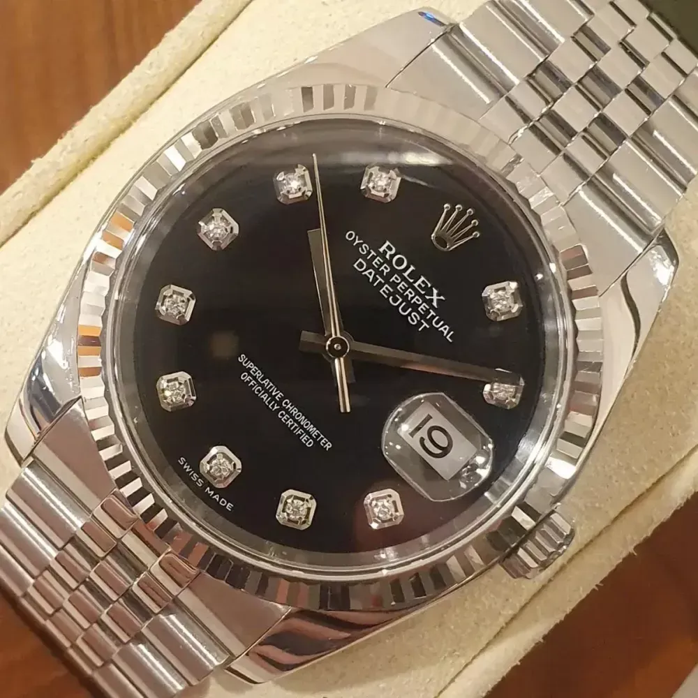 커스텀앤컬렉션 CustomAndCollection(CAC) 명품 하이엔드 시계 쥬얼리 가방 스트랩 잡화 전문 * 커스텀앤컬렉션은 하이엔드 정품 명품 시계 쥬얼리 잡화 가방을 취급하고 있습니다. 강남 오프라인 샵 및 온라인 여러 채널을 통해 동시 판매중임으로 수시로 품절되오니, 구매 전 재고 문의 부탁드리겠습니다^^ ㅡ 브 랜 드 : 롤렉스[ROLEX] ㅡ 모 델 명 : 데이저스트 116234 블랙 텐포인트[에프터셋팅] 쥬빌레 히든 클라스프 브레이슬릿 ㅡ 컨 디 션 : S ㅡ [오버홀(시계 나사 단위 전체 분해 / 세척 / 주유 / 재조립 / 전체검수) / 라이트폴리싱(잔기스, 헤어기스 제거) 완료] * 시계 전체 내부 외부 FULL 완전 정비 완료 * 2년 무상AS개런티 발급 / 만료후에도 평생 관리 ㅡ 사 이 즈 : 36mm ㅡ 구 성 품 : 본품 / 커스텀앤컬렉션 정품보증&AS개런티 / 우드케이스 / 시계천 / 줄질간이공구 로렉스 대표적인 인기 모델인 데이저스트입니다. 로렉스 입문 / 선물 시계로 많이 선택하시는 모델입니다^^ 커스텀앤컬렉션의 대부분의 제품은 온오프라인 판매중으로 수시로 품절되오니, 구매 전 재고문의 연락 부탁드리겠습니다. 수령시 방문수령, 오토바이퀵, 우체국택배 등 가능하며 정확한 수취자 확인이유로 착불 진행됩니다 * 오버홀이란? : 시계 내부 무브먼트를 나사 하나 하나 최소 단위까지 분해하여 부품 및 나사 전체를 세척 및 상태점검 후 시계용 윤활유를 새로 주유하여 전체 재조립 그 후 일 오차 점검 및 작동상태 완전 검수진행. - 명품시계의 경우 99% 오토매틱[기계식 톱니바퀴가 맞물려 작동하는 방식]시계이며 체계적이고 정확한 점검이 필요합니다. * 라이트폴리싱이란 ? : 착용시 발생하는 의류로 인한 기스, 생활기스, 헤어기스, 실기스 등을 미세하게 얇게 기스만 제거하고, 전체 브레이슬릿 세척 및 땀으로인한 때, 오염 등을 초음파 세척하는 작업. 작업완료 후 선물가능한 새상품 컨디션으로 회복됩니다.