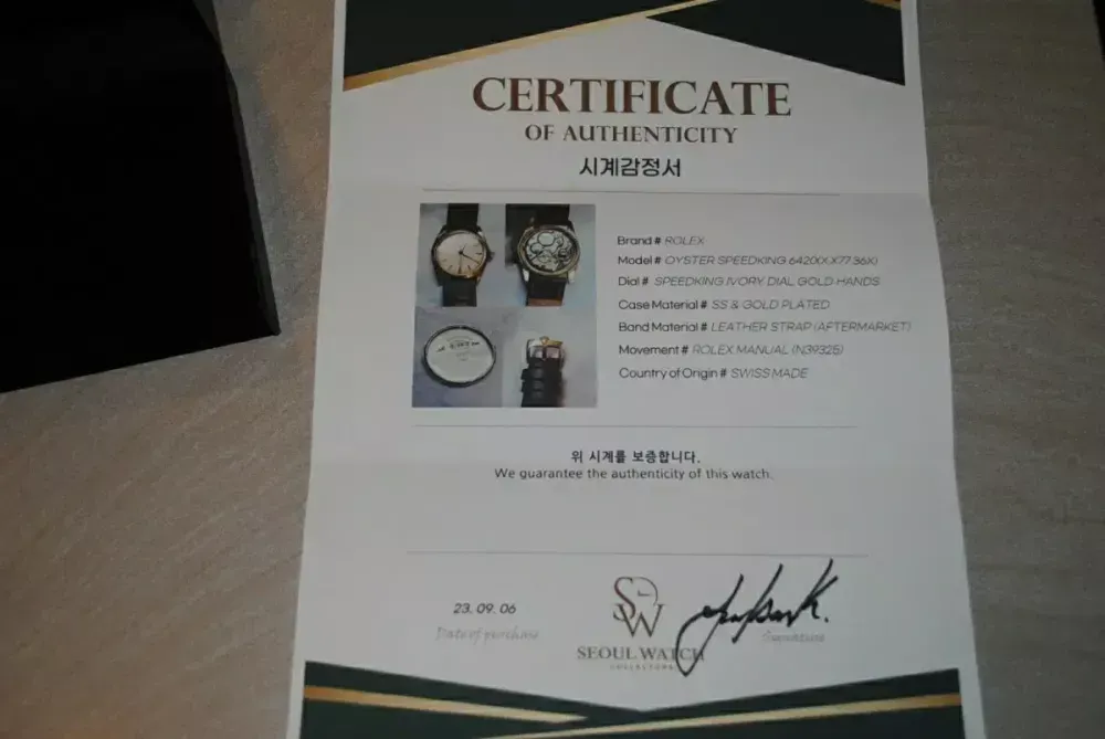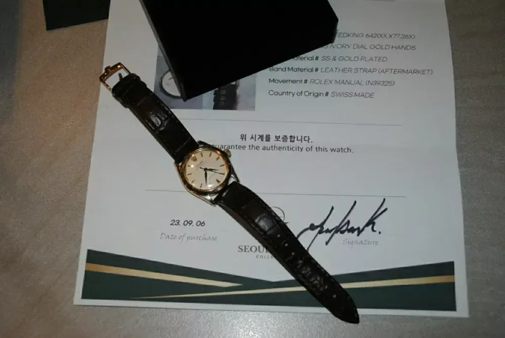 [제 상점 팔로우 및 찜 눌러주시면 택포 해드립니다.] 이번에 소개 시켜드릴 제품은 단순히 시계를 넘어, 시간의 흐름을 담은 예술 작품인 롤렉스 빈티지 오이스터 스피드킹 입니다. 이 시계는 수동모델이며 1950년대의 클래식한 디자인과 현대적인 감각이 조화를 이루며, 어떤 스타일에도 완벽하게 어울립니다 빈티지한 매력이 물씬 풍기는 스피드킹은 손목에 착용했을 때 그 존재감을 확실히 드러냅니다. 시간이 지남에 따라 더욱 깊이 있는 색감을 자랑하며, 인덱스와 핸즈는 롤렉스의 정교함을 그대로 보여줍니다. 빈티지한 느낌을 살리기 위해 자연스러운 패티나가 더해져, 각기 다른 매력을 지닌 다이얼이 완성되었습니다. 빈티지 롤렉스는 시간이 지날수록 그 가치가 상승하는 아이템입니다. 스피드킹 6420은 특히 그 희소성과 독특한 디자인 덕분에 컬렉터들 사이에서 높은 인기를 끌고 있습니다. 브랜드 : ROLEX 사이즈 : 30MM 판매금액 : 350만원 오버홀 완료, 태엽교체 완료, 모두 2개월전 수리완료 된 제품이라서 바로 착용하시면 됩니다. 중형 사이즈로 남녀공용 착용이 가능한 메리트가 있습니다. 노트북/데스크탑 전자기기 교환 받습니다