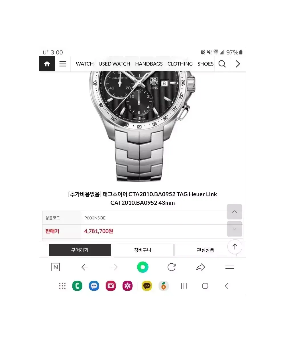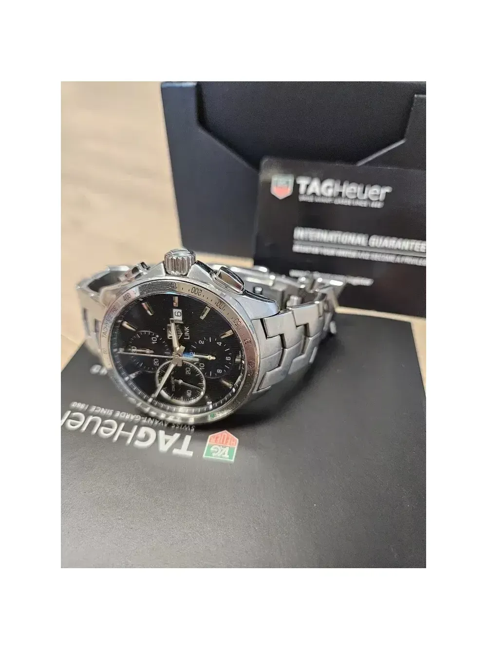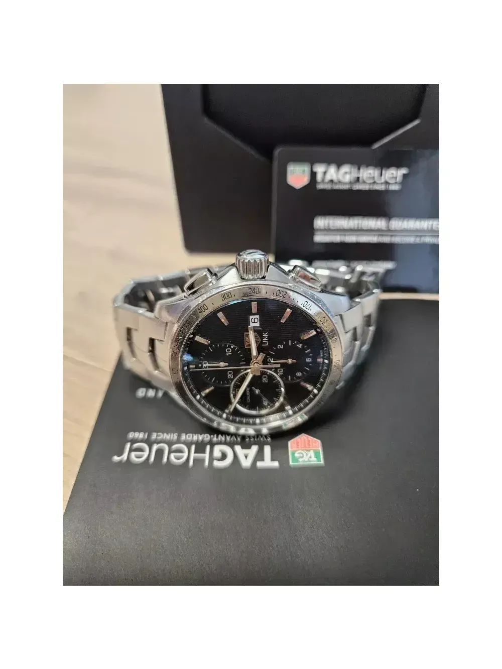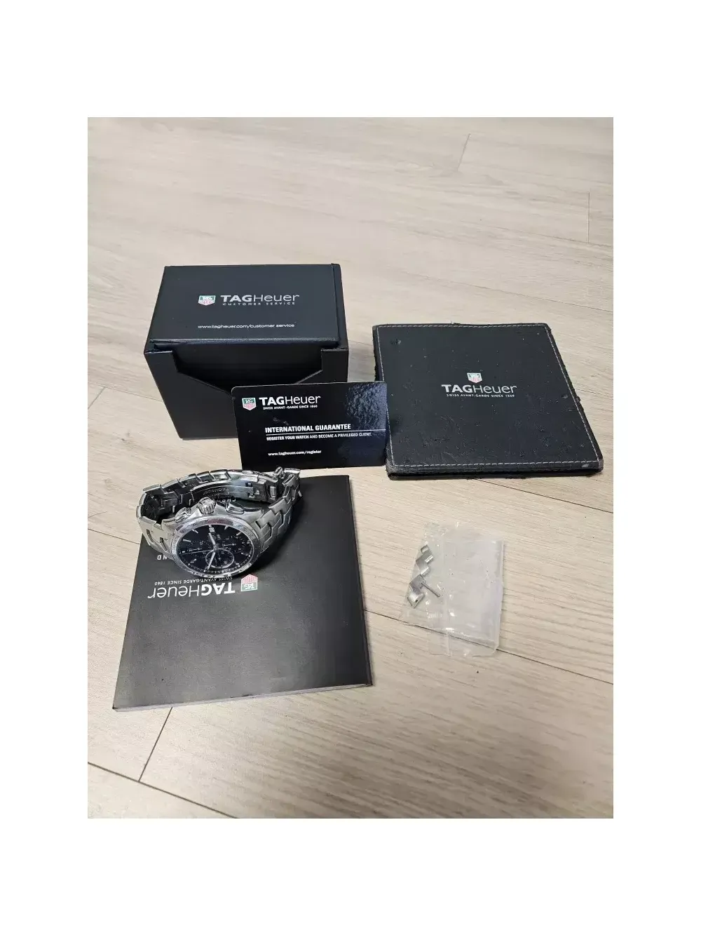 태그호이어 링크 크로노 칼리버16 오토 풀셋 입니다 43mm, 실착용 횟수적어 약간의 생활스크레치 외엔 퍼펙트한 상태 입니다 세종시 입니다 일일시간오차 1초 로 시간매우 정확합니다 잠실 입니다 공일공 칠오사이 칠일일이