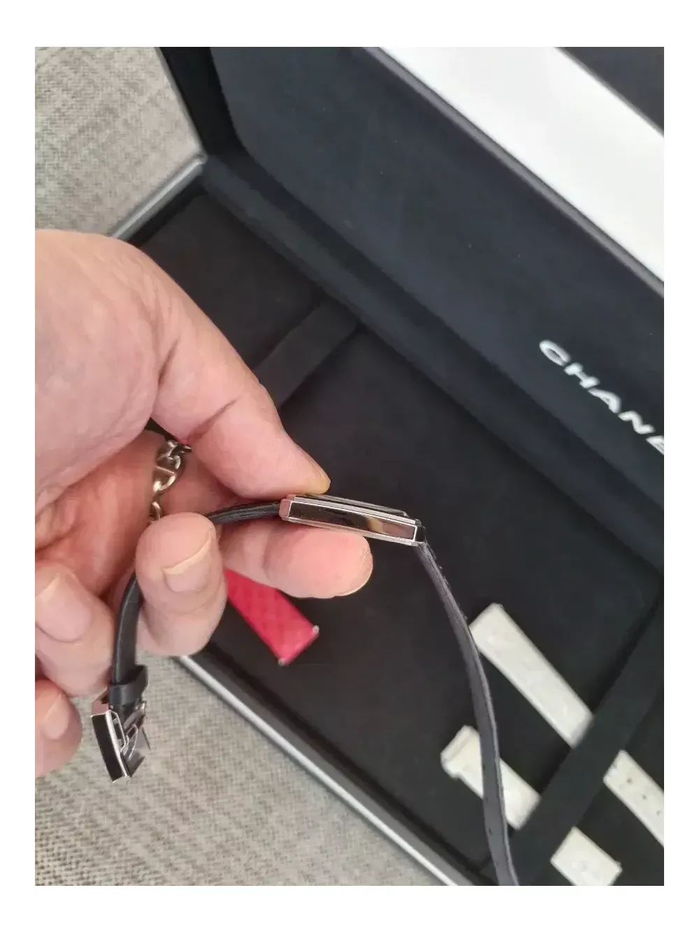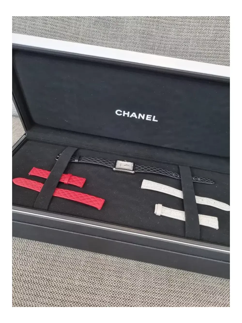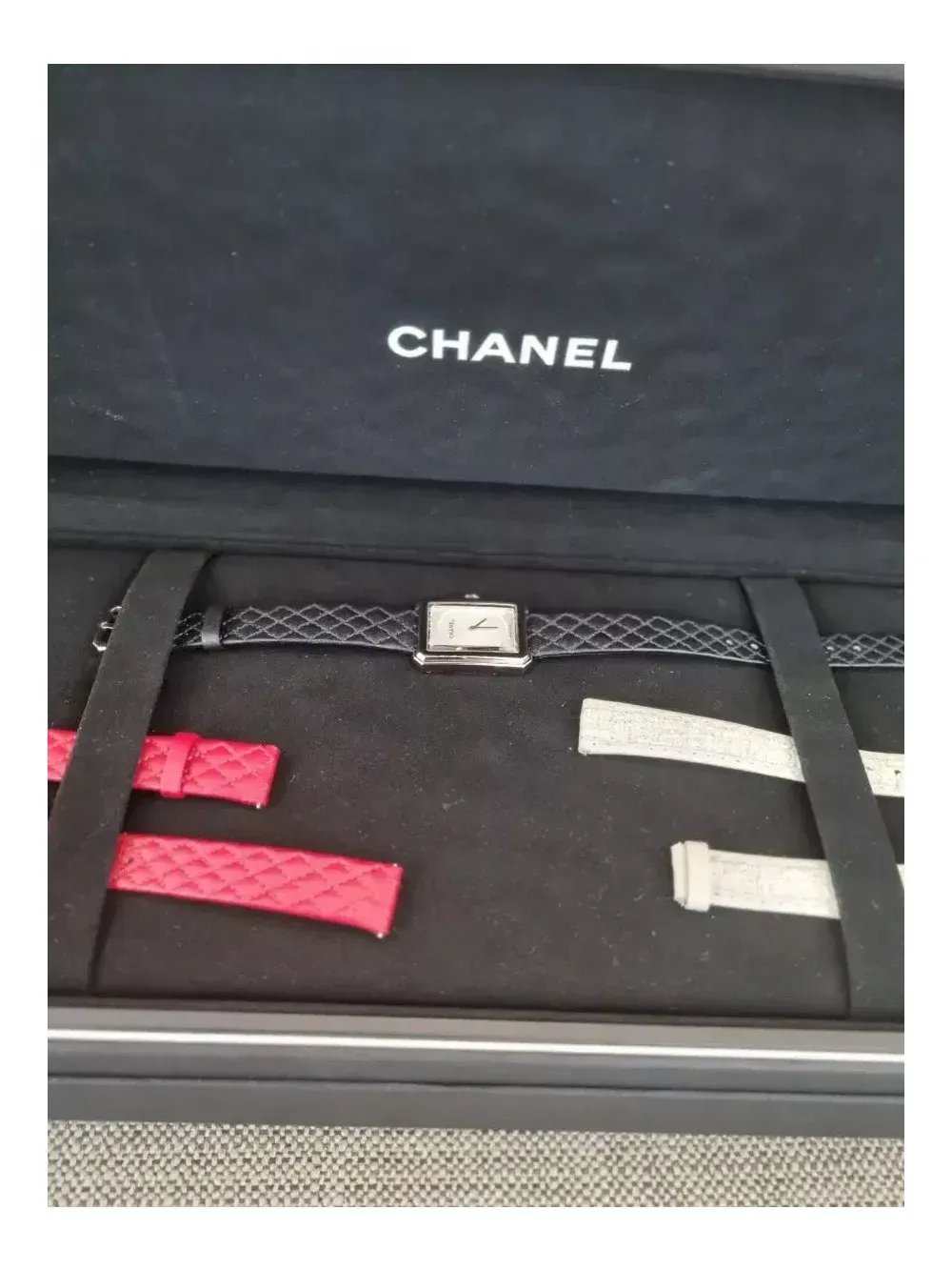 ?2023.12월 구매????????? 최상컨디션 흰판 롯데에비뉴엘본점 사용감이 거의 없음 스트랩3개-한번씩 착용은 해봄 구성품 인보이스까지 풀셋