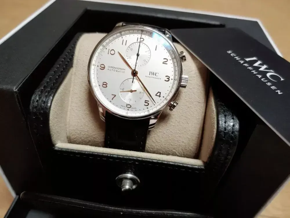 이번주 토요일 (10/5) 오전까지만 시세보다 많이 저렴히 555만원에 판매합니다. (토요일부터 지방 출장이라 그전까지 급매합니다.) 서울에서 직거래만 희망하며 교환은 하지 않습니다. 21년 3월 국내 백화점 구매이며 구성품 풀셋입니다. 실사용 얼마 안되어 찍힘은 없고 약간의 생활 기스 정도로 시계 상태 좋습니다. 뒤백 시스루인 신형 모델이며 처음부터 가죽 버젼으로 나와서 메탈줄은 없습니다.