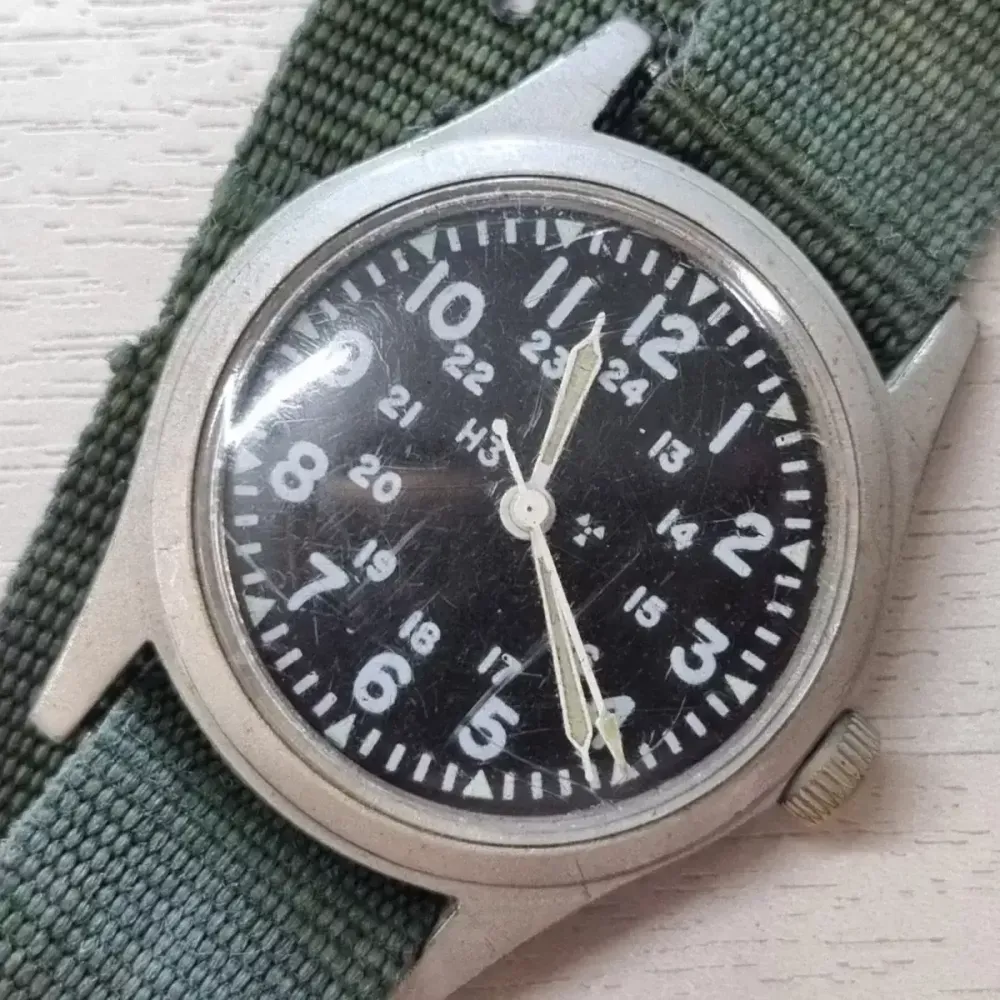 오리지날 해밀턴 미군용 시계입니다 아시는분들은 아시겠지만 구하기힘든 오리지날 입니다 모든부품및 밴드까지 교체된곳없고 운모도 오리지날 1982년제품으로 43년이 지났지만 시간잘맞습니다 70만원입니다 독일제 스톱워치입니다 작동이상없고 아름답습니다 기계식으로 반영구적으로 사용가능합니다 크기작지않고 한손에잡힐정도입니다 5만원입니다