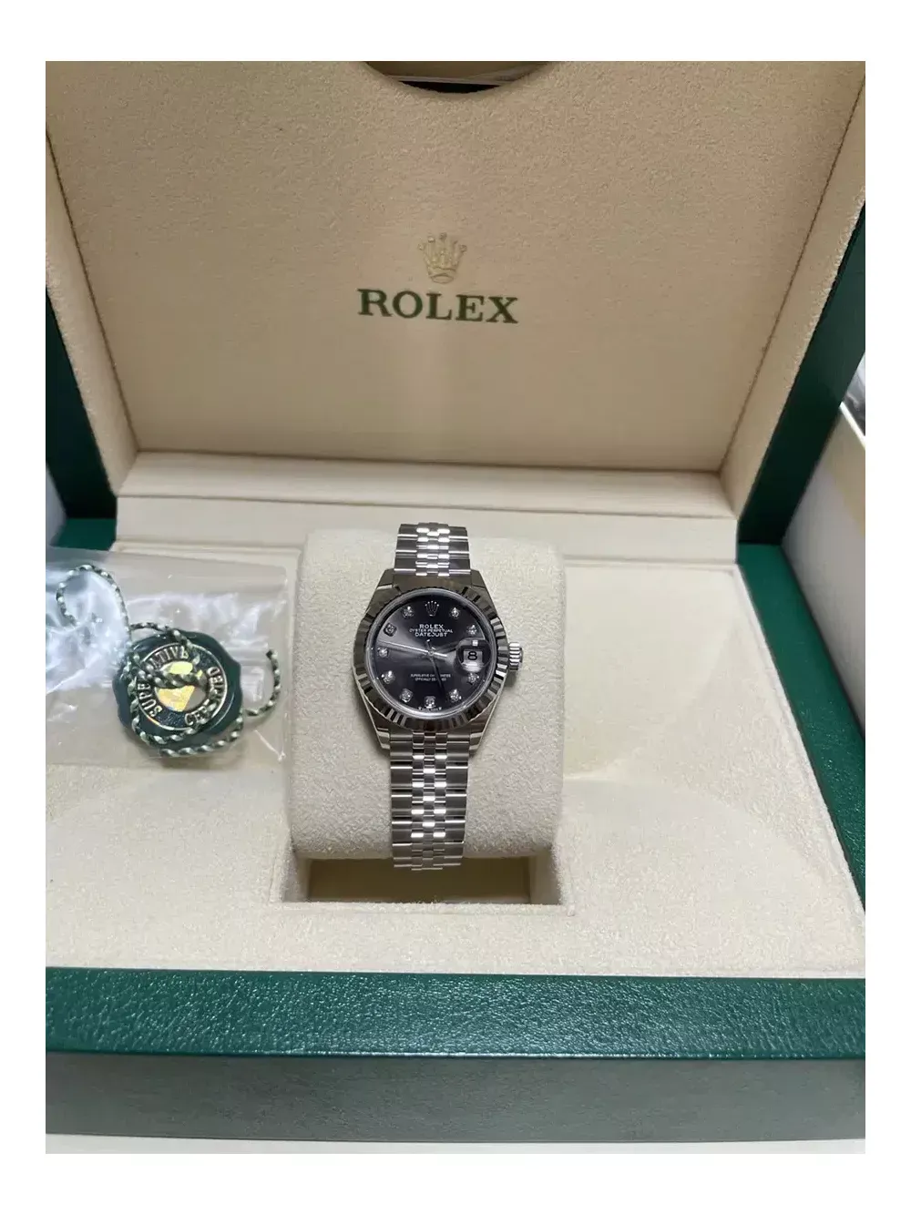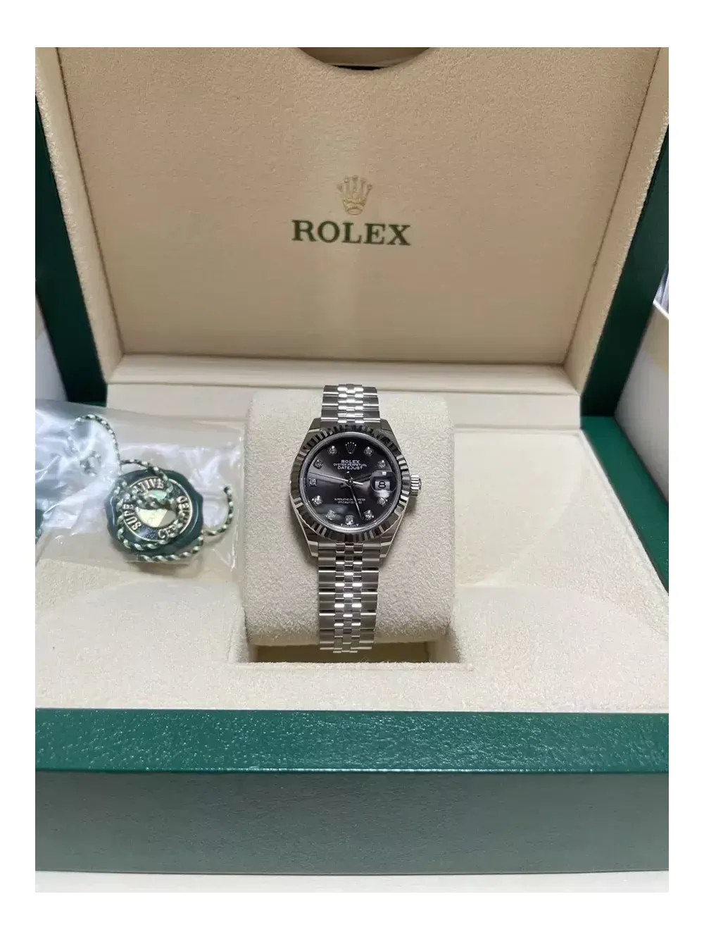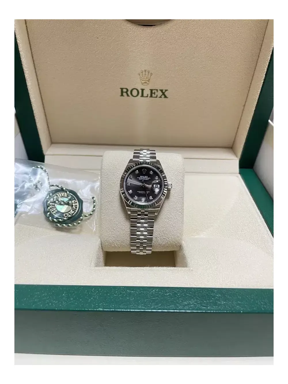 로렉스 279174 데이저스트 28미리 다크로듐 텐포다이아 판매해요. 시계년식은 22년11월식 이고, 구성품은 국내백화점,보증서카드,박스,책자,메달,백화점에서 받은 구성품 풀세트로 다있습니다^^ 시계상태는 새상품급 입니다ㅎㅎ