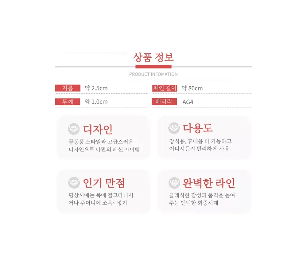 NEW 은색 고급 회중 시계 여행 기념 관광 소장 선물 회종 시게 깔끔한 디자인 팬던트 형식의 멀티 패션 시계! 견고함을 겸비 용도가 다양한 디자인으로 현대적 실용성과 품위! 소장용 필수! 골동품 스타일과 고품질 주머니 시계! **남녀공용 지름 : 약 4.5cm 두께 : 약 1.5cm 체인 총길이 : 약 80cm 배터리 : 쿼츠 사이즈 -스테인레스 & 도금 금속 케이스 재질 100% 새롭고 높은 품질인 골동품 스타일과 고품질 주머니 시계! 너무너무 이뻐요^^ *회중시계 구매 시, 목걸이줄 함께 드립니다 *허리줄 체인은 별도 구매입니다