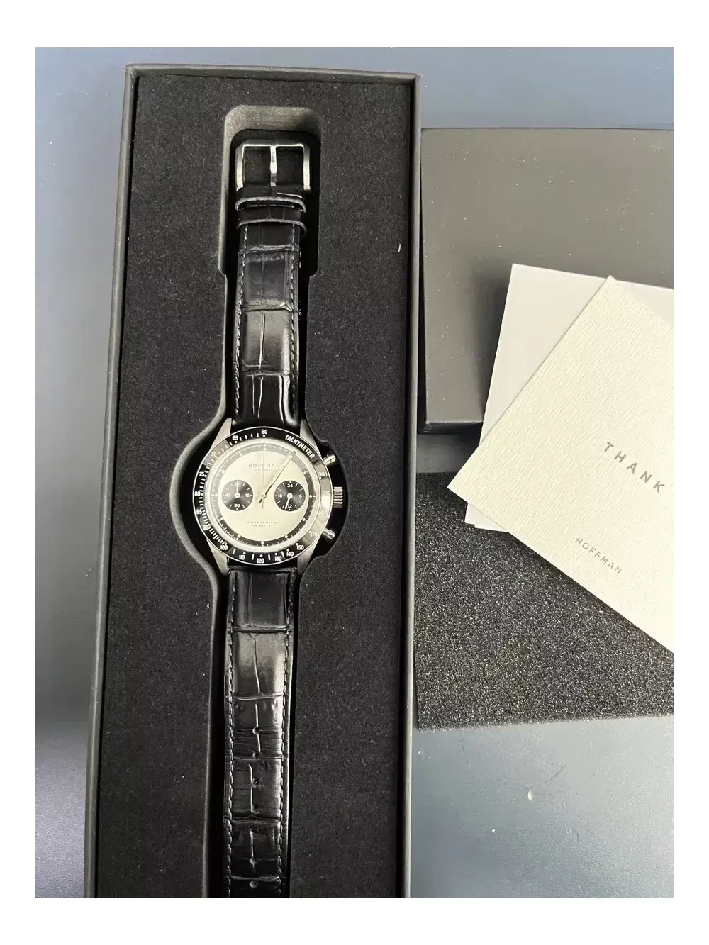 마이크로브랜드 팬더 크로노인 호프만 레이싱 40입니다. 쿼츠시계로 초침이 없어서 틱틱거리지 않아 거슬리지 않습니다. 우체국택배거래