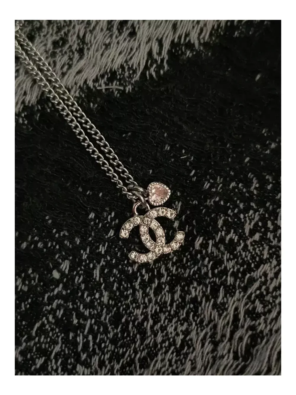 샤넬 정품 부자재 팬던트로 제작된 업사이클링 목걸이. 알러지 및 변색 없는 고급 써지컬스틸 체인만 사용합니다. * 요청사항에 하트 컬러를 적어주세요! - 핑크 레드 올리브 크리스탈 바이올렛 * 하자 없는 새 상품, 재고 소진 시 재입고 여부 미정. * 샤넬 포장 포함 (입고 시마다 디자인 상이)