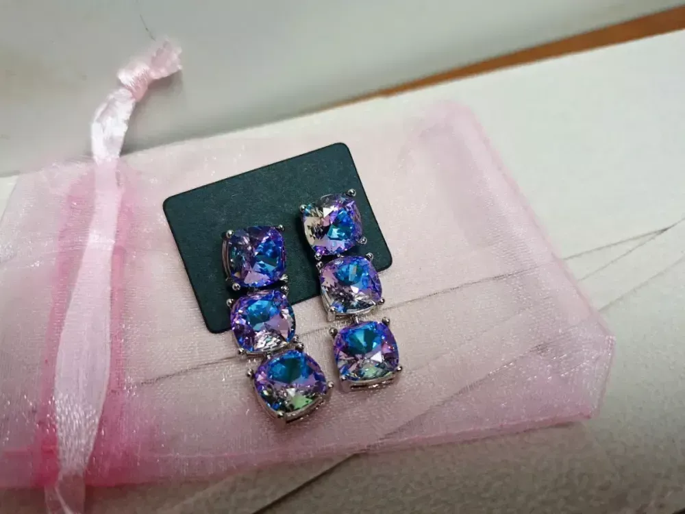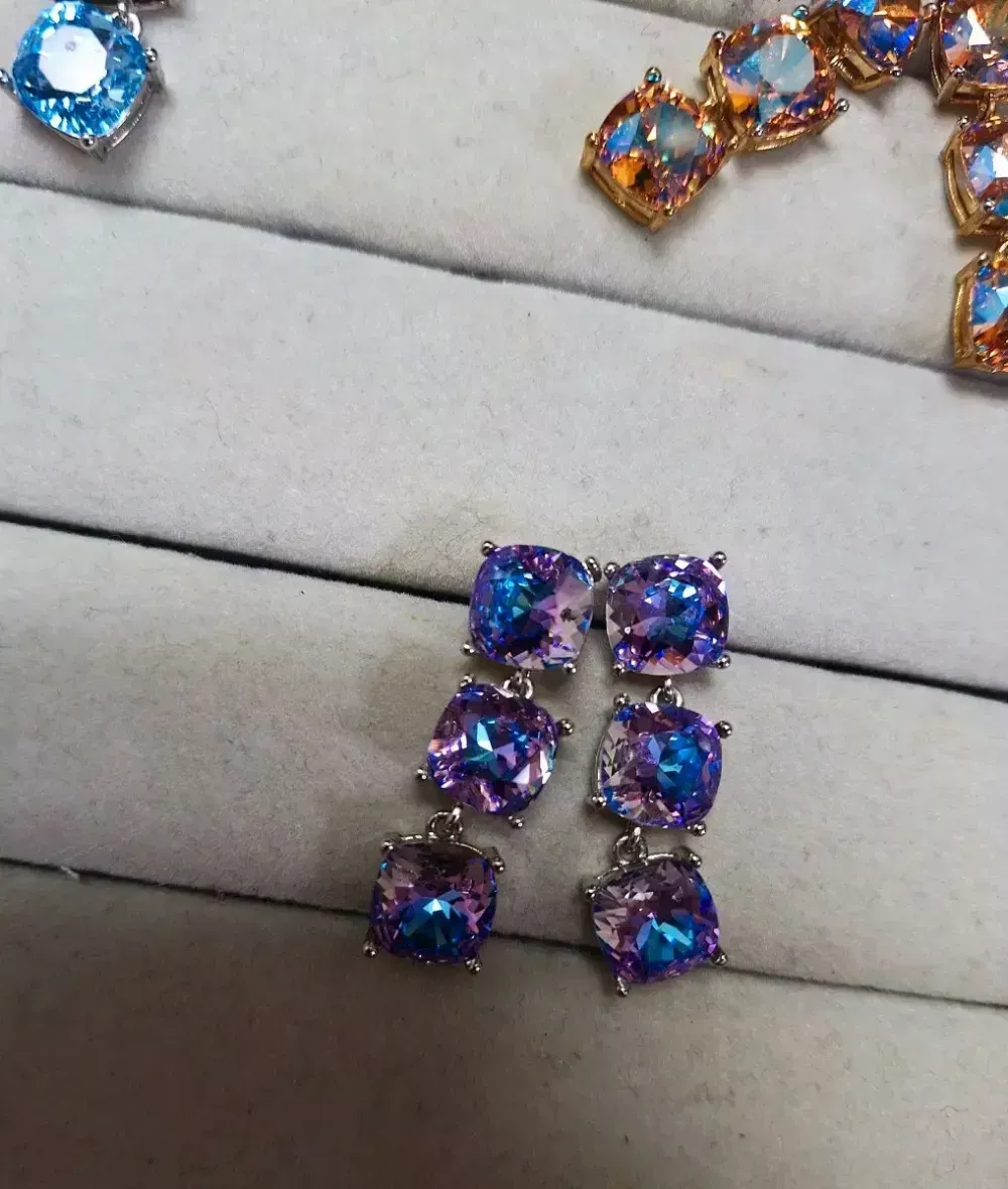 실버침에 정품 프리미엄 오스트리아 스와로브스키 스톤이 3단으로 들어간 굉장히 고급스러운 귀걸이입니다~제가 이 라인을 깔별로 가지고 있는데 컷팅이랑 반짝임이 최상급이라 보기만해도 배가 부릅니다. 사놓고보니 덜어울려보여 가격 낮춰 내놓습니다. 프리미엄 라인이라 굉장히 고급스럽고 주 컬러는 보라와 파랑이 동시에 보이는 신비스러운 색상입니다. 스와로브스키사 귀걸이가 아니라 정품 스와로브스키 스톤을 사용한 실버침 귀걸입니다. ?오스트리아 크리스탈 단종 스톤으로 소장가치가 높고 추후 구하기 어려울 수 있어요 길이 총 3.5cm이며 무게 12g~ ✔️선입금순 판매/ 선입금 -> 익일 송장드림/계좌 받고 거파 시 신고 차단! ✔에눌 문의 ❌ 사이즈 실측❌️ ❌단순변심, 사이즈미스, 공뎀 등등 이유불문 교환,환불 불가. 중고개인거래이므로 발견못한 경미한 하자 있을수도 있으니 예민하신분은 정가로 새 거 구매하세요