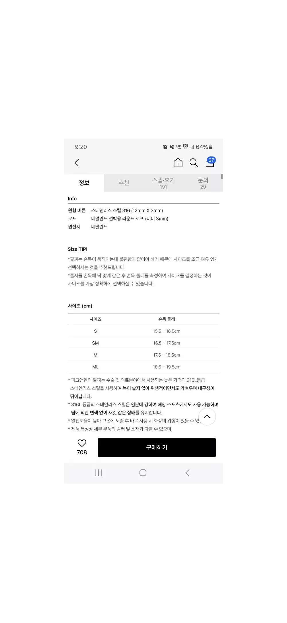 요번 연도 여름에 악세서리로 구매했는데, 태생이 이런거를 귀찮아해서 잘 안 끼게 되네요.. 실착 10회 미만. 사이즈 M / 색상 블랙 얼른 챙겨가세요~