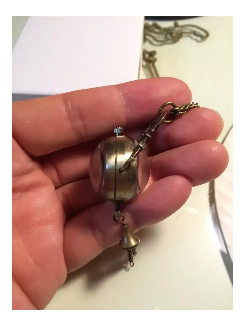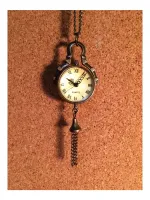 앤틱한 예쁜 목걸이시계입니다~! 투명구슬 속에 시계가 있고 뒷면엔 부속장치가 보여요. 에메랄드 빛이 감도는 용두를 살작 뽑으면 시간을 맞추시실수 있으며 다시 용두를 누르셔야 시계가 작동해요. 미사용 신품으로 배터리도 내장되어 있지만 보관기간중에 소모되어 새 배터리로 교체가 필요합니다. 줄길이는 40(x2)cm 이며 길이는 손쉽게 줄이실수 있어요~! 시계 뒷면(유리반구)이 열리므로 다이소에서 천원에 4개를 파는 시계 배터리(377)로 쉽게 교체 가능합니다. 앞뒷면 스크래치 보호용 투명필름이 붙어있으니 제거후 사용하세요~ 배송료는 GS25 반값택배기준입니다. 일반택배를 원하시면 배송료 2000원을 추가로 보내해시면 됩니다