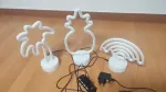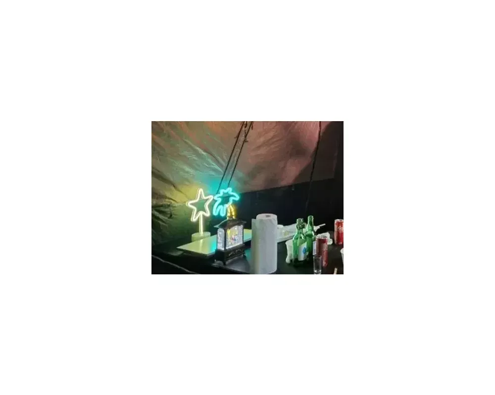 캠핑 분위기를 센스있게 만드는 LED 조명입니다. 사진상 3개 일괄, 어댑터 드립니다. 보조배터리 가능 마지막 사진은 연출샷입니다(별모양 없음) 중고물품상 반품불가