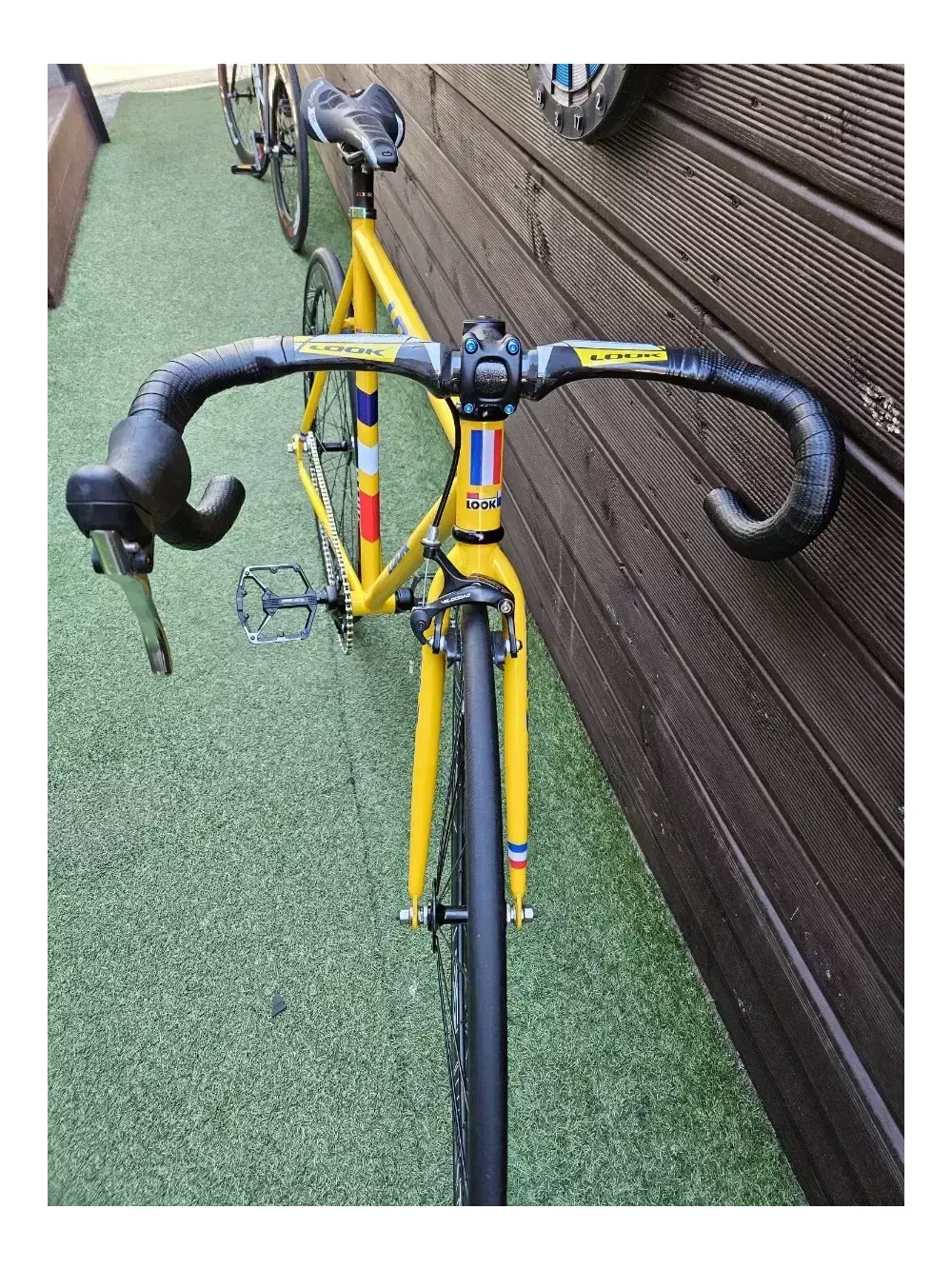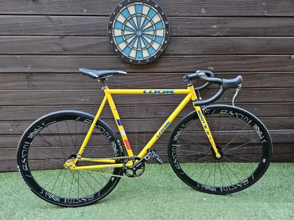 룩 디자인으로 빌딩한 픽시 팝니다 크로몰리 프레임 카본 핸들 스템 안장 금장 체인과 체인 텐셔너 알루미늄 페달 라이더스웨이 휠셋