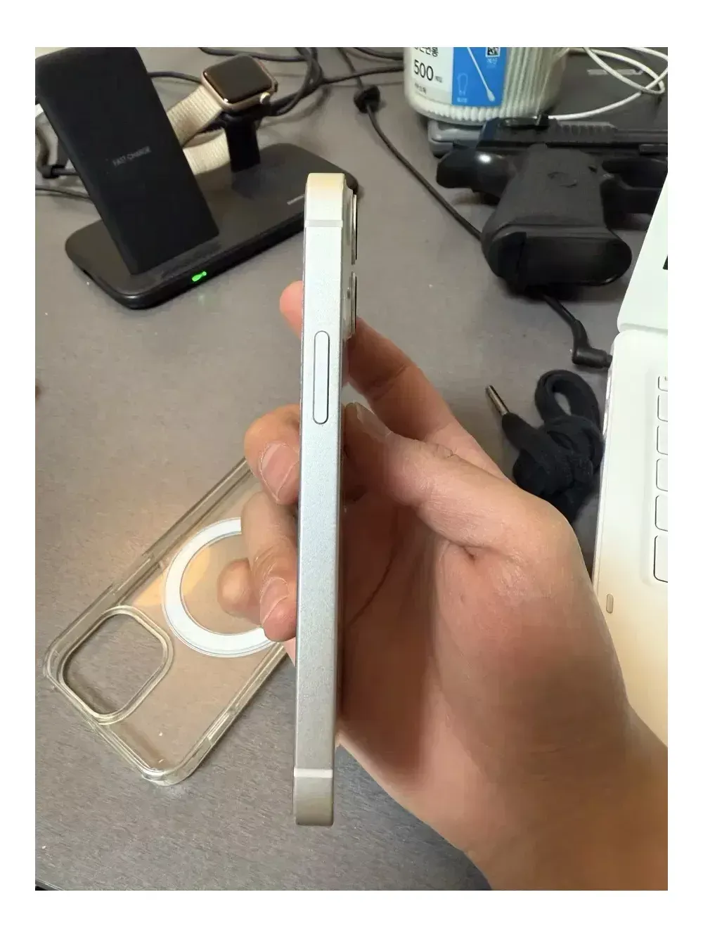 배터리 성능 80% 상태좋아요 윗 쪽 살짝 찍힘있어요 필름O 맥세이프 투명 케이스 새 것 5개 드립니당
