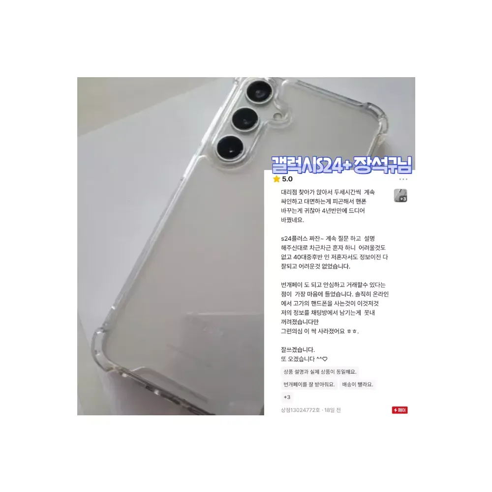 번개장터는 상점주인이 직접 후기를 삭제하거나 수정할수 없게 되어 있습니다 네*버/쿠*/옥* 처럼 후기를 조작했거나 거짓후기 일 시 자진 상점삭제 하겠습니다. ✔️번개장터 미개봉새상품 전문 프로상점 ✔️상점 팔로워 1만명 인증상점 ✔️상점 방문수 27만명 인증상점 ✔️번개페이 거래내역 999건+ 인증상점 ✔️상점평점 5점만점 후기 999건+ 인증상점 ?핫딜 이벤트 가격표? • 갤럭시Z폴드6 -> "97만원" • 갤럭시Z플립6 -> 상점 내 특가판매 • 갤럭시S24 -> 상점 내 특가판매 • 갤럭시S24+ -> 상점 내 특가판매 • 갤럭시S24울트라 -> 상점 내 특가판매 ♦️이벤트상품으로 재고소진 시 판매종료 됩니다. ?본 상점의 모든제품은 사용이력이 없는 미개봉새상품 입니다. ?모든상품 번개페이 안전결제 가능합니다. ?상품구매 후 1년 간 삼성/애플 공식 서비스센터에서 무상 보증서비스 가능합니다. ?구매순서는 번개톡문의 > 주문접수하기 > 재고확인 > 결제진행 > 택배발송 입니다. ?택배사는 CJ,로젠,우체국 택배사 이용 중 이며, 모든상품 무료배송 입니다. ?주문확정 시 1~3일 내 택배수령 가능하며, 서울/경기권 퀵서비스(고객부담) 가능합니다. ?리뷰작성 시 프리미엄 사은품6종SET (크리스탈케이스3개/크리스탈필름3개/젠더/케이블/휴대폰거치대/그립톡) 증정합니다. ?리뷰작성 시 매월 추첨 10명 에어팟프로 or 버즈프로 증정합니다. ?상담시간은 평일 오전10시~오후8시 이며, 주말은 휴무입니다. 상담량이 많아 답변이 늦더라도 양해 부탁드립니다. ?구매조건에 따라 금액이 변동될 수 있으니, 번개톡으로 1:1 문의 주시면 할인조건에 대해 설명드립니다. ?온라인 구매가 처음이라 구매 망설여지신다면, 실제 저희 고객님들 상점후기 확인해보시고 참고해보시면 좋습니다. ?번개장터 최상위(신용도 상위1%) 모범상점입니다. 안심하고 구매하세요♡ #특가 #선착순 #재고소진시 #이벤트종료 -할인안내 출고가 (2,229,700원) - 공시지원금 (500,000원) - 추가지원금 (74,700원) - 라이트제휴할인 (685,000원) = "판매가 970,000원" -사전승낙서 https://www.ictmarket.or.kr:8443/ajax/ajax3.do?id=PRE0000155098&seq=1&yn=1