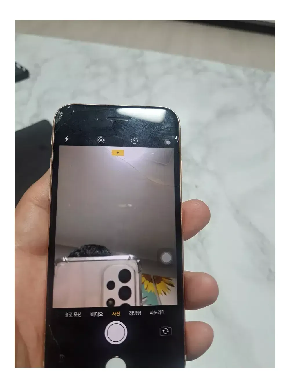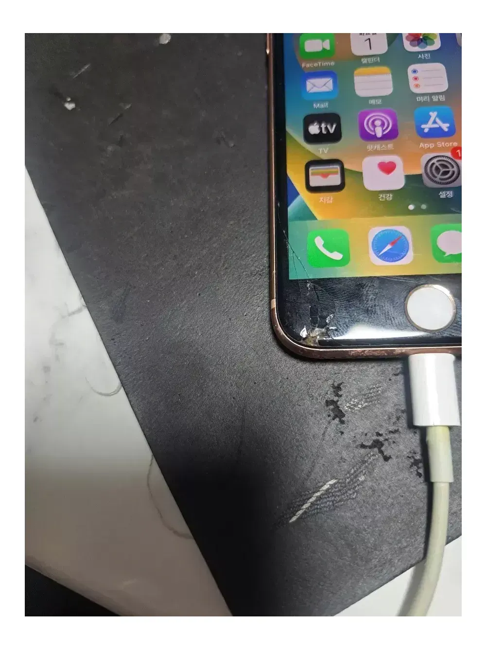 아이폰8 부품폰 입니다. 카메라는 문제 없습니다. 뒷판 애프터마켓 제품으로 교체 하였습니다. 현재 전원이 꺼졌다 켜졌다 합니다. 부품용 입니다.. 지문인식도 홈버튼도 안됩니다..
