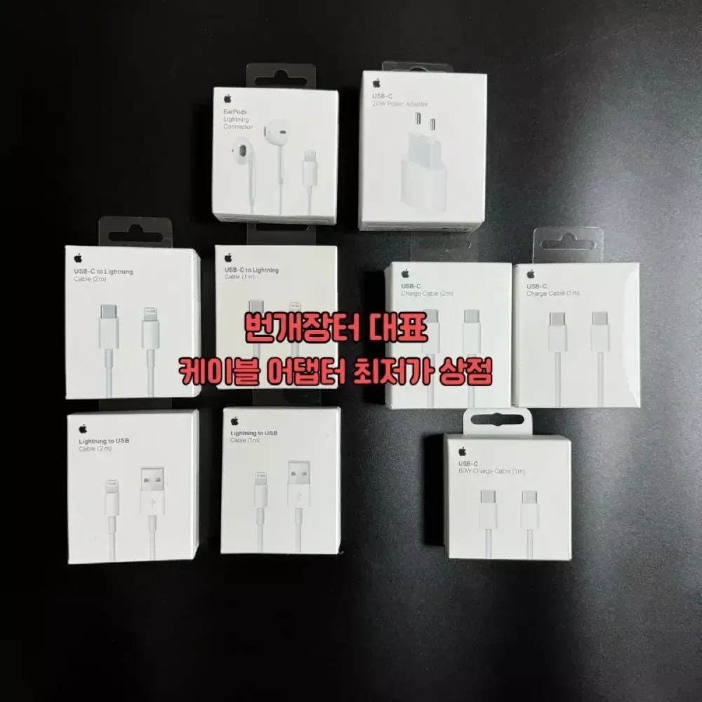 8핀 = 라이트닝 = 아이폰14 모델까지 충전잭모양 20w c 타입 고속 어댑터 = 17,000원 c to 8핀 (라이트닝) 1m = 9,900원 c to 8핀 (라이트닝) 2m = 11,900원 usb to 8핀 (라이트닝) 1 m = 6,500원 usb to 8핀 (라이트닝) 2 m = 9,900원 c to c 1 m = 9,900원 c to c 2 m = 11,900원 c to c 1 m 우븐 60w = 15,900원 c to c 1m 우븐 - 12,000원 ( 에어팟에서 꺼냄 ) 택배거래 + 3,000원 3개 이상 구매시 무료배송 대화 부탁드립니다. 직거래 서울 도봉역 혹은 북서울중학교 앞 *교환 / 환불 : 7일 안으로 상품에 문제가 있을 시 교환 환불 진행 * 개인의 단순변심 및 현저한 손상은 교환 반품이 어렵습니다. 본 상품은 병행 수입 정품입니다.