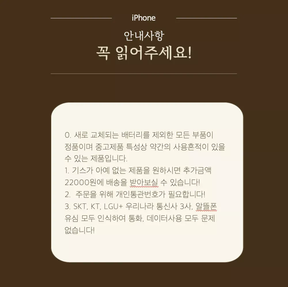 ☑️ 옛날 감성의 아이폰 SE 수요를 반영하여 최대한 타협한 가격입니다. 정품 아이폰 SE제품입니다. 배터리 새 제품으로 교체하여 배터리 성능 100%로 보내드리고 있습니다! 또한 무상AS 1년 지원해드리고 있기에 사용중 문제가 있으시다면 무료 AS가능합니다! ?️ (애플공식센터에서도 수리가 가능합니다, 하지만 비용이 청구됩니다!) 구성품은 아이폰, 충전케이블, 어댑터이며 현재 리뷰이벤트로 케이스와 필름까지 증정해드리고 있습니다! ? 현재 9월 맞이 행사로 이어폰 증정 + 모든 용량 30000원 할인중입니다! ? ⭐️ 16GB – 153000₩ → 123000 ₩ ⭐️ 32GB – 172000₩ → 142000 ₩ ⭐️ 64GB – 191000₩ → 163000 ₩ ⭐️ 128GB – 212000₩ → 187000₩ 색상: 실버, 스페이스 그레이중 선택 (로즈골드, 골드의 경우 따로 문의 부탁드립니다 :) 결제는 저희 상점 규칙상 안전결제로만 받고있습니다! 결제 후 번개톡으로 색상 알려주시면 됩니다! 32기가 안전결제 창: https://stuv4.app.goo.gl/AtFBH 64기가 안전결제 창:https://stuv4.app.goo.gl/Yh7BM 128기가 안전결제 창: https://stuv4.app.goo.gl/gNJWM ??읽어주세요?? 0. 새로 교체되는 배터리를 제외한 모든 부품이 정품이며 중고제품 특성상 약사용흔적이 있을 수 있는 제품입니다. (22000원 추가 후 기스 아예 없는 제품 또한 구매 가능하십니다:) 1. 주문을 위해 개인통관번호가 필요합니다! 2. SKT, KT, LGU+ 우리나라 통신사 3사, 알뜰폰 유심 모두 인식하여 통화, 데이터사용 모두 문제 없습니다! 3. 국내센터가 오픈하였습니다! 배송일은 영업일 기준 2~4일 소요됩니다! 4. 주문 취소는 구매 후 10분 이내로 가능합니다. 10분 이후로 취소 시 수수료 발생합니다. 5. 단순변심으로 인한 환불일 경우도 취소수수료가 발생합니다. 6. 결제 전 상점 소개와 공지도 참고해주세요!