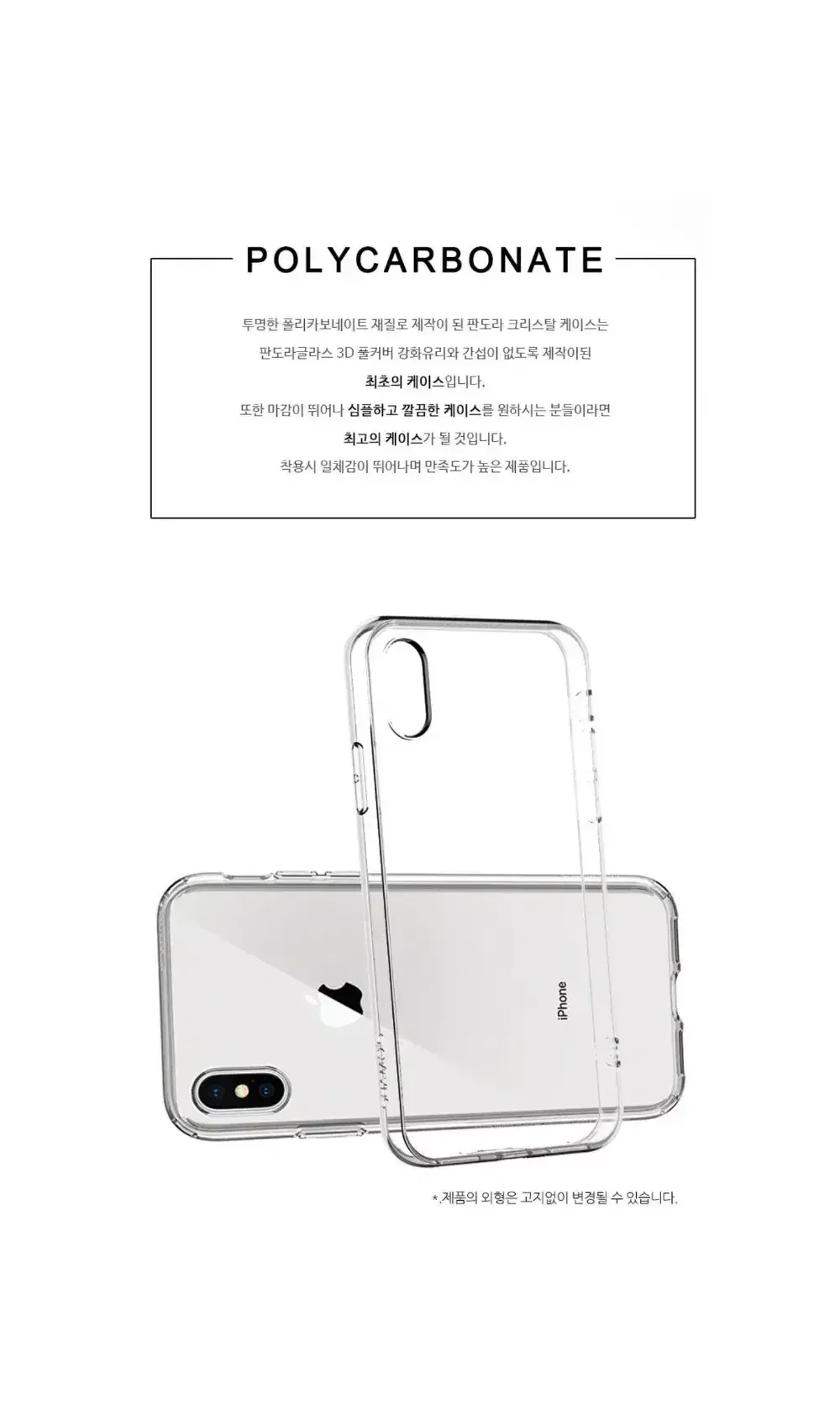 ■변색 없는 크리스탈 3D하드케이스■ ▪︎아이폰 전기종 보유 ▪︎0.8mm 슬림형으로, 낀듯 안낀듯 휴대폰 그대로의 아름다움을 지켜주는 케이스 ▪︎폴리카보네이트 소재로 변색 없이 내구성도 강한 케이스 ✔️번개페이 배송비 변경 및 합배송 등 문의는 번개톡 부탁드립니다. ✔️배송비 우편 900~원 / 준등기 2000원 / GS25반값택배 2100원 / 일반택배 3000원(제주산간+3) ?1만원 이상 *첫*구매 시 GS반값택배 ●1500원● ?1만원 이상 *재*구매 시 GS반값택배 ●1800원● ?1만원 이상 구매 시 *우편* 무료배송 [ 유리필름 배송 불가X] ?3만원 이상 구매 시 *일반택배* 무료배송 ■모든 유리필름은 파손으로 택배배송만 가능합니다 ⬇️ㅡㅡㅡㅡ휴대폰케이스ㅡㅡㅡ⬇️ ▪︎M1. 매머드 맥세이프 케이스(4500원)●(변색방지) ▪︎0.변색없는 3D 크리스탈 하드케이스(3900원)● ▪︎1.불사 매머드 케이스(1800원)● ▪︎2.불사 매머드 카드케이스(2900원)●(변색방지) ▪︎3.불사 매머드 하드케이스(3900원)●(변색방지) ▪︎4.불사 카메라 풀커버 케이스(3500원)●(변색방지) ⬇️ㅡㅡㅡㅡ전면 필름ㅡㅡㅡㅡ⬇️ ▪︎5.방탄 강화유리필름/우레탄필름(1000원) ▪︎6.방탄 강화유리 풀커버필름(아이폰)(2500원) ▪︎6.방탄 강화유리 풀커버필름(갤럭시)(3000~4000원) ⬇️ㅡㅡㅡㅡ다기능 전면 필름ㅡㅡㅡㅡ⬇️ ▪︎6-1.*사생활 보호* 방탄 강화유리 풀커버 필름(아이폰)(3000원) ▪︎6-2.*지문방지* 방탄 강화유리 풀커버 필름(아이폰)(3000원) ▪︎6-2.*지문방지* 우레탄 풀커버 필름(갤럭시)(3000원) ⬇️ㅡㅡㅡㅡ카메라필름/후면필름ㅡㅡㅡㅡ⬇️ ▪︎7.강화유리 카메라 보호필름(1900원) ▪︎8.아이폰11~15시리즈 풀커버형 카메라보호필름(2500원) ▪︎9.갤럭시/아이폰 후면 기스방지 우레탄 필름 (1000원) ▪︎10.아이폰 후면 강화유리필름(2500원) ▪︎11.아이폰12~14 시리즈 후면/측면 기스방지필름(2000원/1500원) ⬇️ㅡㅡㅡㅡ기타 악세사리/충전ㅡㅡㅡㅡ⬇️ ▪︎12.아이폰 홈버튼 필름(1000원) ▪︎13.에어팟 실리콘 케이스/18K철가루방지 스티커(1500원) ▪︎14.10W 8핀/C타입 고속충전케이블(2000원) ▪︎15.10.5W 8핀/C타입 고속충전기(3900원) ▪︎16.3in1 고속충전 케이블(3900원) ▪︎17.8핀/C타입 이어폰 변환 젠더(3900원) ▪︎18.충전 케이블 변환젠더(500원) ▪︎19.스마트톡(1300원) ⬇️ㅡㅡㅡㅡ아이패드/애플워치ㅡㅡㅡㅡ⬇️ ▪︎A.아이패드 투명 범퍼 젤리 케이스 (5000~6000원) ▪︎B.아이패드 전면 강화유리 필름 (6000~7000원) ▪︎C.애플워치 투명 풀커버 강화유리 케이스(3000원) ▪︎D.애플워치 풀커버 액정보호필름(2500원) ●간단 참고사항 -우편, 준등기로 배송된 제품에 대해서는 분실/파손시 어떠한 보상도 불가하며, 단순변심환불이 불가합니다. -자잘한 하자, 단순 기스는 불량사유가 아닙니다. 공정,운반중에 자연스레 발생하는 현상이며, 노마진 판매인만큼 자잘한 하자로는 AS가 불가합니다. 민감하신분들은 구매 자제부탁드립니다. -환불은 상점 교환환불정책에따라 진행됩니다. ●배송별 간단 안내 -우체국 우편 (900~1500원) 송장발급X/배송전연락X/불예측배송 배송기간 3~20일 -우체국 준등기 (2000원) 송장발급O/배송전연락X 배송기간 1~5일 -GS25 반값택배 (2100원) 송장발급O/GS25편의점으로만 배송 가능 배송기간 1~3일 -일반택배 (3000원) 송장발급O/배송전연락0 배송기간 1일 -우체국 택배 (4300~원) 송장발급O/배송전연락O/군부대전용 배송기간1일 ●자주 오는 질문 Q: 일반 매머드 와 매머드 하드 의 차이점이 무엇인가요? A: 일반 매머드 는 TPU단일 소재, 매머드 하드 는 PC+TPU혼합 소재로 변색 방지 효과가 있습니다. 추가로, 매머드 카드 케이스도 TPU단일 소재입니다. ●크리스탈 하드케이스는 전체가 PC소재입니다.