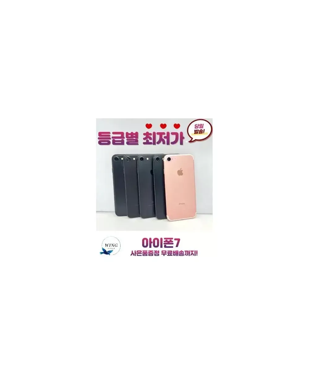 안녕하세요 WING MOBILE입니다? 오프라인 중고폰 전문 업체 운영중 믿고 거래하세요! 한국어 상담/中文谘询/ENG OK!! ?번개장터 구매후기 이벤트 진행중? ?사은품 무료 증정! [젤리케이스+보호필름+충전기+유심핀세트+세정티슈] ?배송비 무료! (한정수량으로 제공되며 조기 소진될 수 있습니다. 이벤트에 참여시 문의해주세요!) ?상품 상세 정보? 상품명: 아이폰7 용량: 32GB,128GB 색상: 제트블랙,매트블랙, 골드, 실버,로즈골드 구성 : 휴대폰 통신사 : SKT/KT/LGU+3사 유심변경가능 (사용하던 유심 바로 사용가능) #### 실버 색상 추가금 ₩20,000입니다 #### #### 배터리 새로 교체비용 ₩30,000입니다 #### ••••••••••••아이폰7 32GB•••••••••••• S급 : 169,000원 A급 : 149,000원 (일시품절) B급 : 129,000원 (일시품절) C급 : 일시품절! ••••••••••••아이폰7 128GB•••••••••••• S급 : 179,000원 A급 : 159,000원 B급 : 139,000원 C급 : 일시품절! ?상품 등급 안내? SS급: 사용감이 거의 없는 새폰 같은 상품! S급: 전체적으로 아주 깨끗한 상품! A급: 사용감 조금 있지만 가장 많이 선호하는 등급!! B급: 전체적으로 사용감 또는 잔상이 있는 상품 가성비짱!! C급: 기능이상은 없으나 액정/LCD 파손이 있는 상품 배달/업무/게임폰 추천!! ? 거래방법 ? ??♀️직거래??♀️ 주소: 서울 광진구 자양동 227-1번지 3층 (방문전 연락주세요) 평일: 오후 1시 ~ 오후 9시(주말/공휴일은 휴무입니다!) ?택배거래? 택배사: 로젠택배 무료배송 평일 오후 4시 전 주문시 당일발송! ?퀵거래? 접수 가능! 퀵요금 고객 부담입니다! ⚠️ 필독사항 ⚠️ * 전문 엔지니어팀이 외관&기능 정밀 검수 후 출고합니다. * 문의하실 때 상품번호를 알려주시면 신속한 상담 가능합니다. * 구매일로부터 7일 이내 기능 이상이 발생 시 교환 또는 환불 가능(고객 과실에 의한 부분 제외) * 기능상 문제가 아닌, 단순변심으로는 교환&환불 절대 불가합니다. * 분실/도난 핸드폰은 판매하지 않습니다. * 사용하시던 중고폰 최고가로 매입해드립니다!