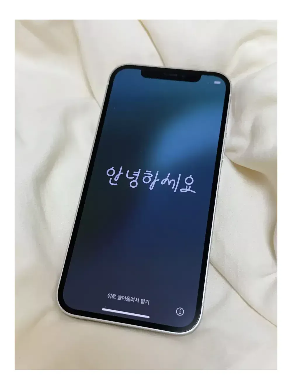 아이폰 12 화이트 128기가 판매합니다! 케이스랑 필름 한 번도 안빼서 액정이랑 외관 깨끗해요 배터리 효율 75%고 원하시면 케이스랑 보조배터리랑 케이블 드려용 ‼️가격 택배비포함 310,000원입니다‼️