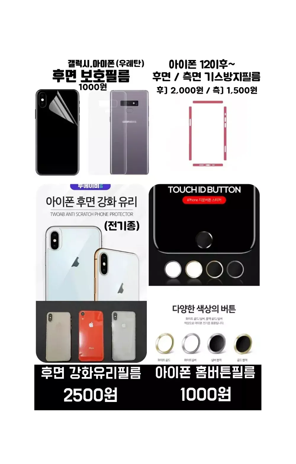✔️번개페이 배송비 변경 및 합배송 등 문의는 번개톡 부탁드립니다. ✔️배송비 우편 900~원 / 준등기 2000원 / GS25반값택배 2100원 / 일반택배 3000원(제주산간+3) ?1만원 이상 *첫*구매 시 GS반값택배 ●1500원● ?1만원 이상 *재*구매 시 GS반값택배 ●1800원● ?1만원 이상 구매 시 *우편* 무료배송 [ 유리필름 배송 불가X] ?3만원 이상 구매 시 *일반택배* 무료배송 ▪︎모든 유리 필름은 파손위험으로 택배배송만 가능합니다▪︎ ⬇️ㅡㅡㅡㅡ휴대폰케이스ㅡㅡㅡ⬇️ M1. 매머드 맥세이프 케이스(4500원)●(변색방지) 0.변색없는 3D 크리스탈 하드케이스(3900원)● 1.불사 매머드 케이스(1800원)● 2.불사 매머드 카드케이스(2900원)●(변색방지) 3.불사 매머드 하드케이스(3900원)●(변색방지) 4.불사 카메라 풀커버 케이스(3500원)●(변색방지) ⬇️ㅡㅡㅡㅡ전면 필름ㅡㅡㅡㅡ⬇️ 5.방탄 강화유리필름/우레탄필름(1000원) 6.방탄 강화유리 풀커버필름(아이폰)(2500원) 6.방탄 강화유리 풀커버필름(갤럭시)(3000~4000원) ⬇️ㅡㅡㅡㅡ다기능 전면 필름ㅡㅡㅡㅡ⬇️ 6-1.*사생활 보호* 방탄 강화유리 풀커버 필름(아이폰)(3000원) 6-2.*지문방지* 방탄 강화유리 풀커버 필름(아이폰)(3000원) 6-2.*지문방지* 우레탄 풀커버 필름(갤럭시)(3000원) 6-3*사생활*+*지문방지* 방탄 강화유리 풀커버 필름(아이폰)(5000원) ⬇️ㅡㅡㅡㅡ카메라필름/후면필름ㅡㅡㅡㅡ⬇️ 7.강화유리 카메라 보호필름(1900원) 8.아이폰11~14 시리즈 풀커버형 카메라보호필름(2500원) 9.갤럭시/아이폰 후면 기스방지 우레탄 필름 (1000원) 10.아이폰 후면 강화유리필름(2500원) 11.아이폰12~14 시리즈 후면/측면 기스방지필름(2000원/1500원) ⬇️ㅡㅡㅡㅡ기타 악세사리/충전ㅡㅡㅡㅡ⬇️ 12.아이폰 홈버튼 필름(1000원) 13.에어팟 실리콘 케이스/18K철가루방지 스티커(1500원) 14.10W 8핀/C타입 고속충전케이블(2000원) 15.10.5W 8핀/C타입 고속충전기(3900원) 16.3in1 고속충전 케이블(3900원) 17.8핀/C타입 이어폰 변환 젠더(3900원) 18.충전 케이블 변환젠더(500원) 19.스마트톡(1300원) 20.맥세이프 자석 / 철판(5000원/1500원) ⬇️ㅡㅡㅡㅡ아이패드/애플워치ㅡㅡㅡㅡ⬇️ A.아이패드 투명 범퍼 젤리 케이스 (5000~6000원) B.아이패드 전면 강화유리 필름 (6000~7000원) C.애플워치 투명 풀커버 강화유리 케이스(3000원) D.애플워치 풀커버 액정보호필름(2500원) ●모든 상품들은 상점에 상품상세글, 상세사진이 따로 있습니다.● ●간단 참고사항 -우편, 준등기로 배송된 제품에 대해서는 분실/파손시 어떠한 보상도 불가하며, 단순변심환불이 불가합니다. -자잘한 하자, 단순 기스는 불량사유가 아닙니다. 공정,운반중에 자연스레 발생하는 현상이며, 노마진 판매인만큼 자잘한 하자로는 AS가 불가합니다. 민감하신분들은 구매 자제부탁드립니다. -환불은 상점 교환환불정책에따라 진행됩니다. ●배송별 간단 안내 -우체국 우편 (900~) 송장발급X/배송전연락X/불예측배송 배송기간 3~20일 -우체국 준등기 (2000원) 송장발급O/배송전연락X 배송기간 1~5일 -GS25 반값택배 (2100원) 송장발급O/GS25편의점으로만 배송 가능 배송기간 1~3일 -일반택배 (3000원) 송장발급O/배송전연락O 배송기간 1일 -우체국 택배 (4300~원) 군부대배송가능 배송기간1일 ●자주 오는 질문 Q: 일반 매머드 와 매머드 하드 의 차이점이 무엇인가요? A: 일반 매머드 는 독일산TPU단일 소재, 매머드 하드 는 PC+TPU혼합 소재로 변색 방지 효과가 있습니다. 추가로, 매머드 카드 케이스도 TPU단일 소재입니다. ●크리스탈 하드케이스는 전체가 PC소재이고, 모서리에 범퍼가 없는 깔끔한 투명케이스 입니다. 기본 매머드 케이스 상품정보 [재질 TPU] [제조국 CHINA] [제조사 ISK]