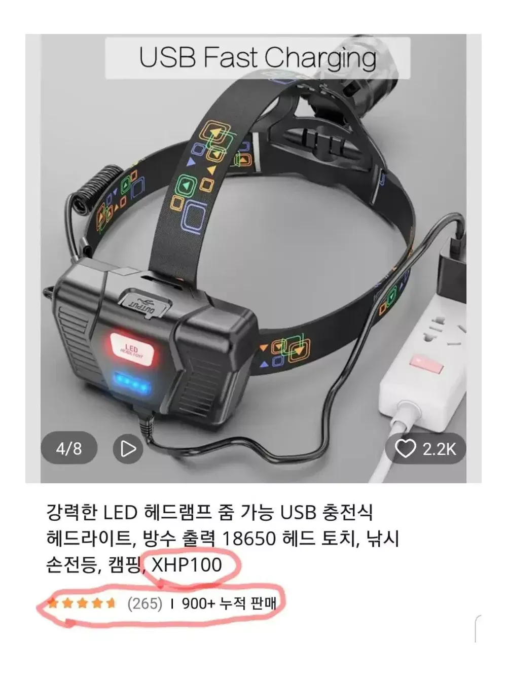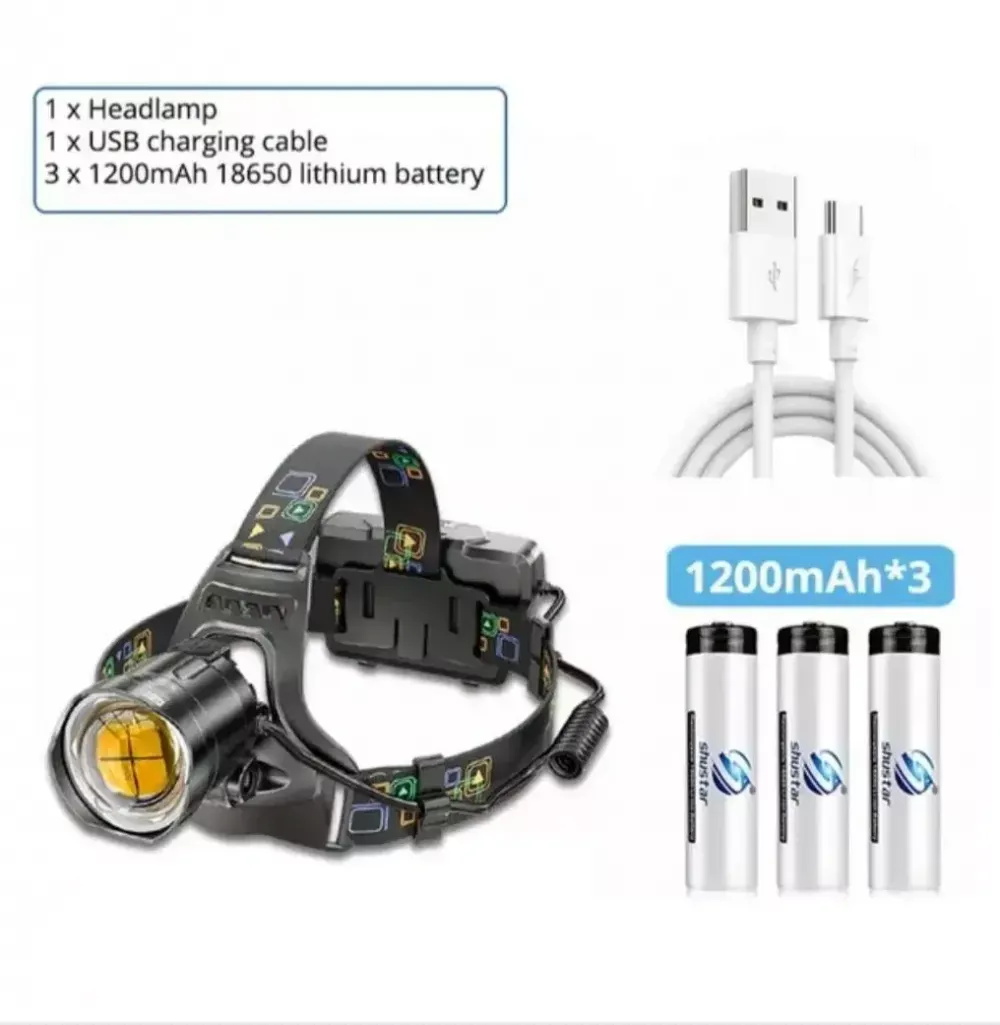 xhp100헤드랜턴.헤드렌턴.손전등. 18650충전지 3알 포함. (미사용. 새상품) 헤루질,낚시,등산,캠핑,밤작업,자전거등... 밝기 엄청 밝습니다.(밝기걱정 NO)