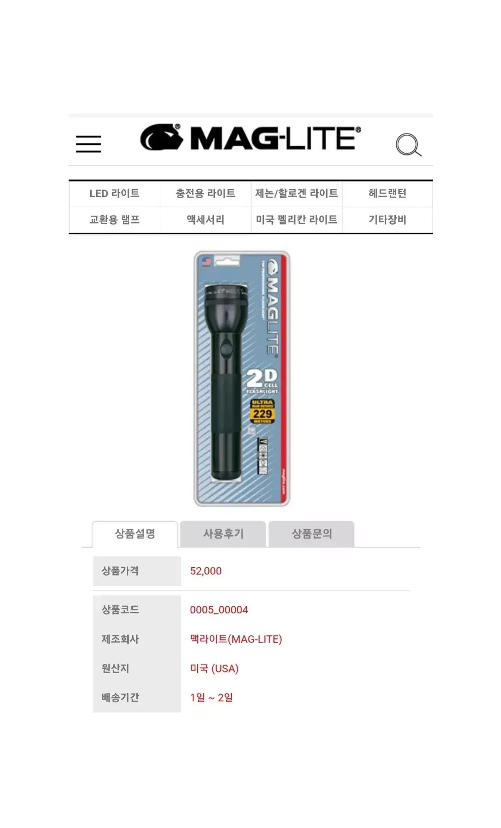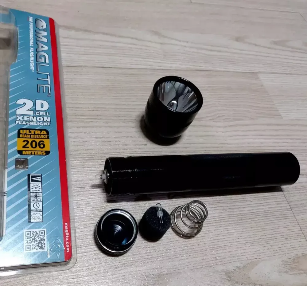 - 맥라이트 클래식 제논 2D셀 후레쉬라이트 - (미군과 미국경찰에도 지급하고 있는 잘 아시는 유명한 아이템이며 제논 후레쉬만 선호하는 분들만 컨택해 주세요) * 박스 개봉후 테스트만 한 거의 새것. * MADE IN U.S.A. * LED 아닌 제논 전구이며 사진처럼 스페어 여분의 전구도 탑재되어 있고 전체 무게는 묵직합니다. * 길이 약 26cm * 밧데리 D셀 × 2개 ( 밧데리 미포함 ) * 제원과 광량, 지속시간등은 판매처 사진 참고해 주세요. * 직거래시 택포 40,000원 * 리턴, 네고 x