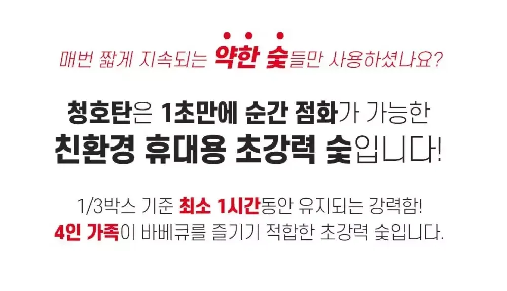 ??친환경 1급 사과나무 캠핑 바베큐 홍탄숯 1box 100개입 ??삼겹살 숯불구이시 고기의 기름이 떨어져도 ??그으름이 없고 고기가 타지 않아요 ??불판교체 필요없더라구요 ??캠핑, 낚시,등산등 간편하게 사용가능,