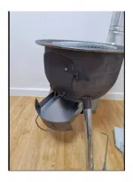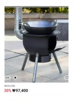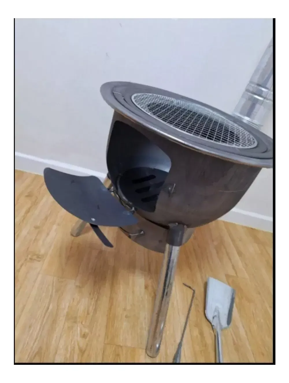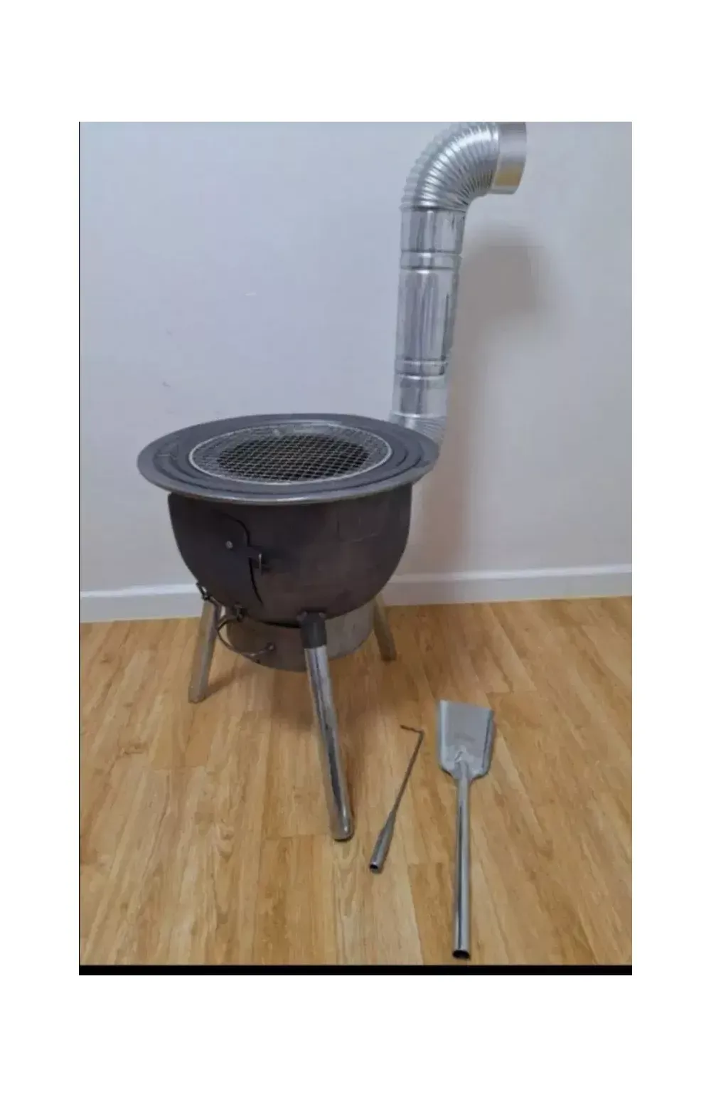 미사용 제품 43 지름 x 50 높이 x 93(연통높이 포함) cm 밭이나 캠핑, 마당에서 쓰기에 좋습니다 불꼬챙이와부삽 , 냄비 크기에 맞춰 끼울수 있는 링 3개 ,석쇠 같이 드립니다