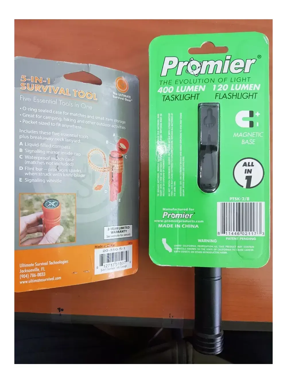 생존 관련 서바이벌 제품입니다. 구난시 사용하면 생존확률이 좋을 제품입니다 1. 5 in 1제품 비상반사 거울, 호루라기, 성냥불판(성냥미포함), 플린트바 (부싯돌), 나침반 2. 생존 라이트 소형 LED 에너지 세이브형 라이트 입니다 불빛변화로 역할에 맞게 모드변경 가능합니다 하단에 자석이 박혀있어 비상시 차량 또는 철재 부분에 붙여 비상상황을 알릴 수 있습니다 밧데리는 미포함 상품입니다 전부 새것이구요 사진 그대로 드립니다 생존도구 취미 비상 구급낭 캠핑등 야외로 나가기를 좋하시는 분들께 추천드립니다