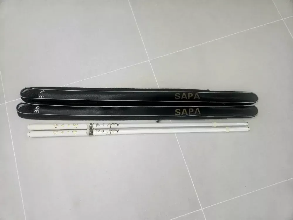 무궁도조 낚시대 30:50.000원 판매완료 34:65.000원 일괄:110.000원 낚시집교체. 낚시대상태 색변색없이 아주좋습니다~~ 절번 까징.깨짐 전혀없습니다 ~~ 흰색 실리콘 줄감기 장착.흰새 비향 수축고무 장착 가격대비 가성비 최고에 낚시대임다