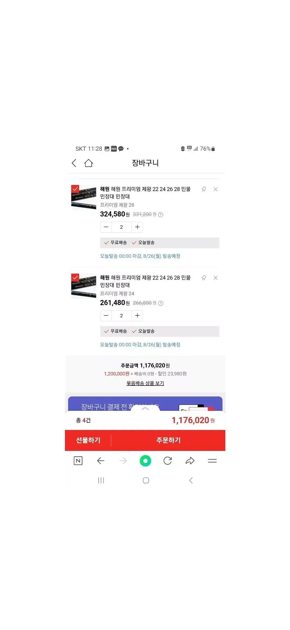 혜원 프리미엄 제왕~~ 24쌍포 각60.000원 1대판매완료 28쌍포 각70.000원 32쌍포 각80.000원 판매완료 36 90.000원 판매완료 전부 상태 아주좋습니다 낚시대 잘만들기로 유명한 혜원레보츠 에서만든 고급낚시대 임다 제왕시리즈 중 최고기 모델로 초경질 낚시대임다 강하고.질겨서 어떤고기도 쉽게 제압할수 있습니다~~ 신품가 50프로도 안돼는 가격에 저렴히 판매합니다