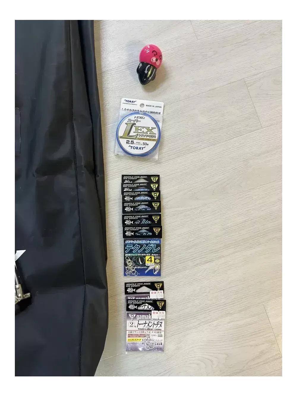 야이바 방수가방 가마가츠 벵에돔 바늘 4호 6개 가마가츠 감성돔 바늘 2호 2개 캐릭터 구멍찌 1호 토레이 목줄 2.5호 일괄입니다 조인트 M8 50cm 스텐 뜰채프레임은 같이 드립니다 울산 직거래 가능합니다