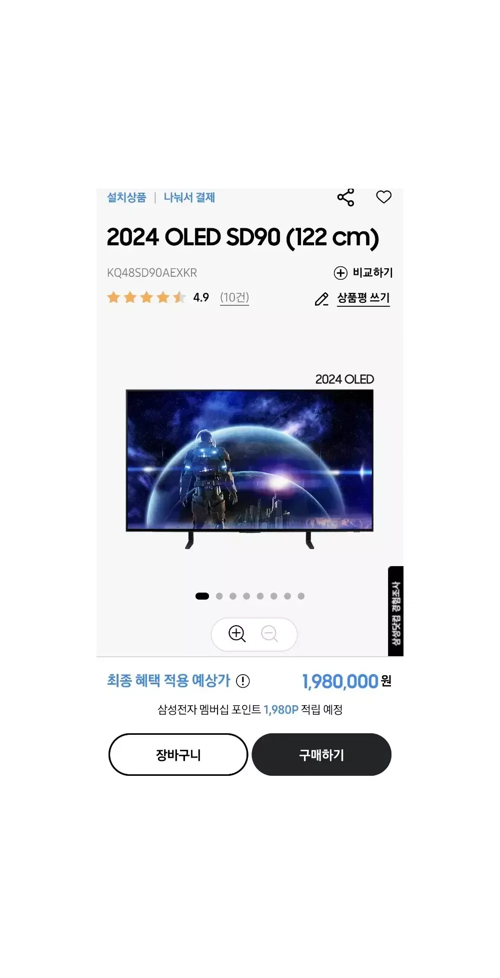 삼성 48인치 OLED tv 판매합니다 기사님이 작동여부만 확인한 새상품입니다 부산 직거래 희망합니다