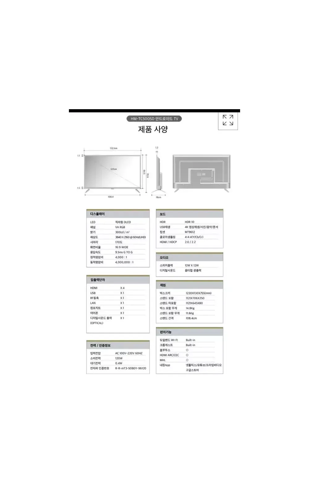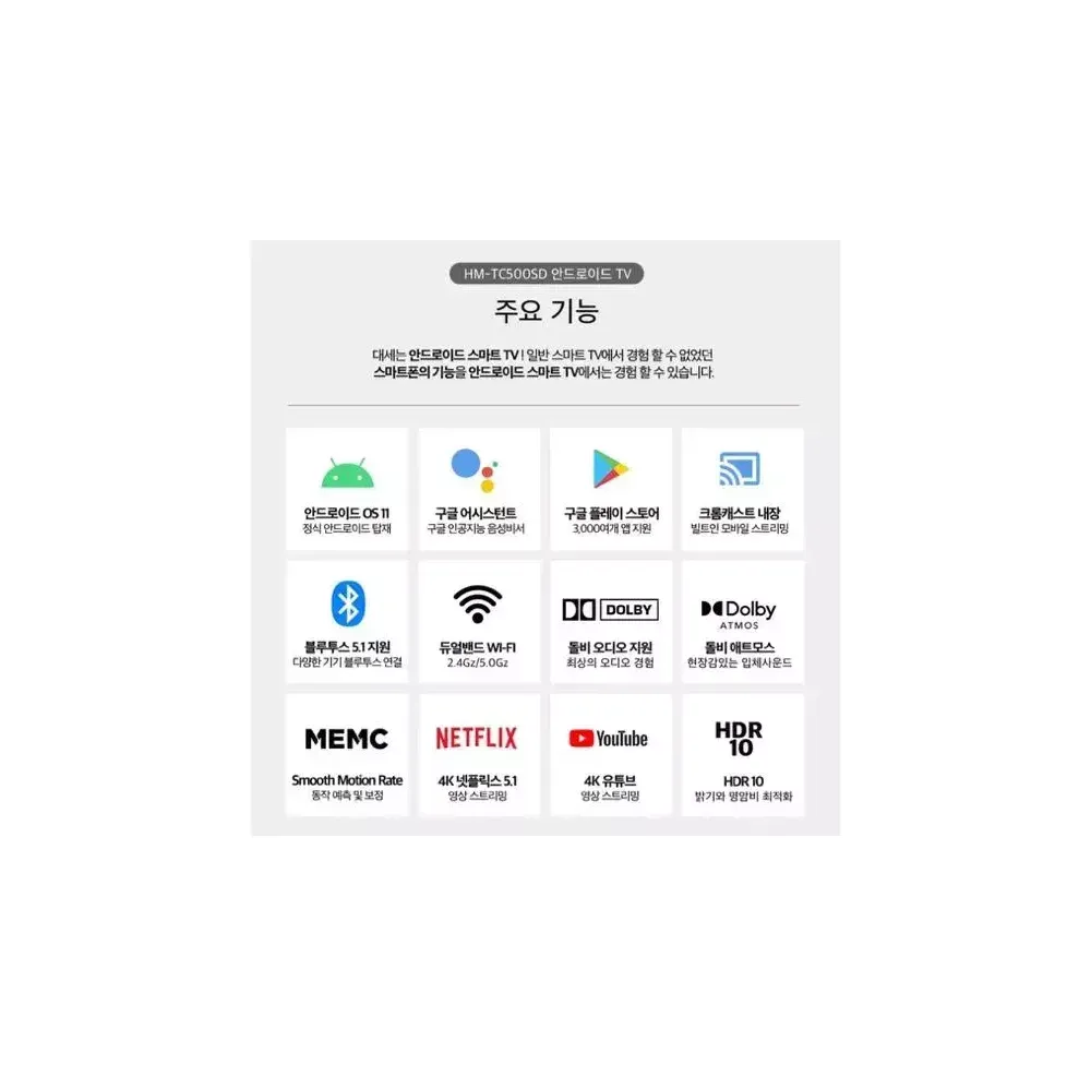 하이메이드 모델명 HM-TC500SD 작년에 하이마트에서 50만원대에 구매했고 사용감이나 하자 없습니다. (리모콘, 사용설명서 포함) 유튜브, 넷플릭스, 블루투스 호환됩니다. 직거래, 택배 가능합니다.