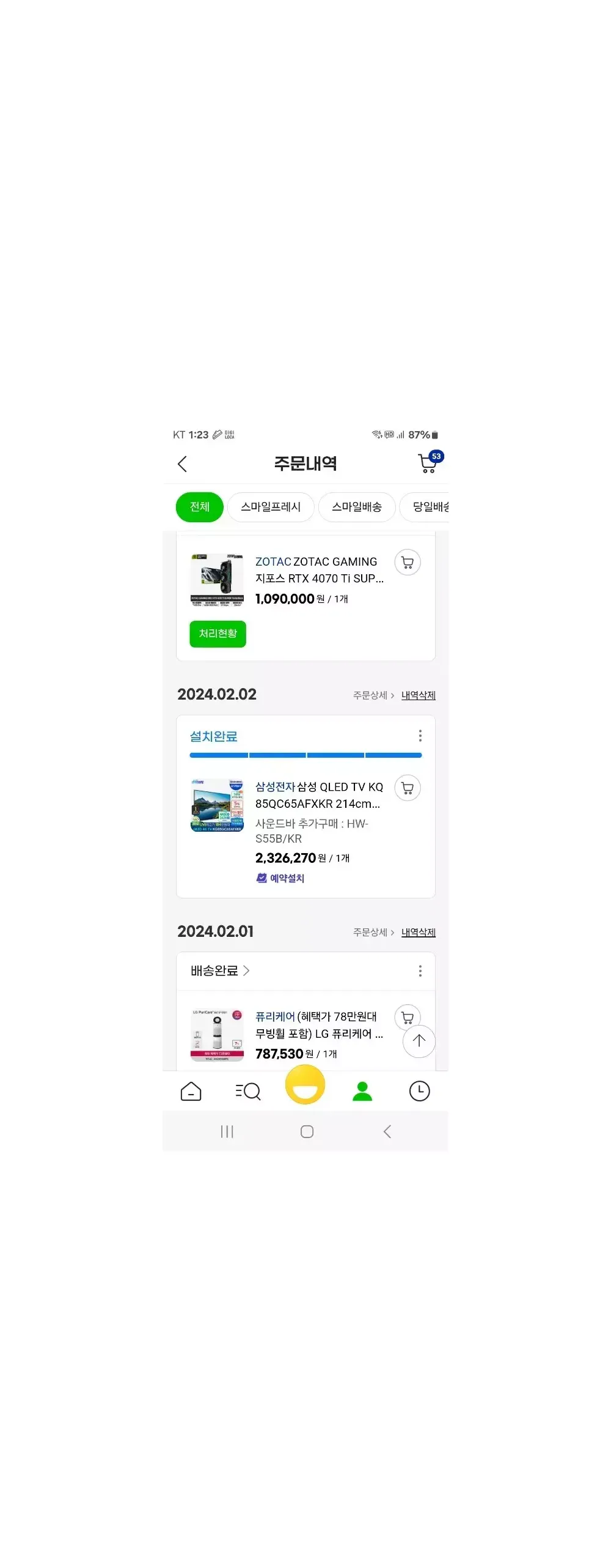 24년2월 최신형 사운드바추가로 275하던거특가로235정도에구매했습니다 테두리비닐도안땠구요 상태는신품 새제품이나다름없습니다~ 24년1월제조날짜되있구요 최신형입니다 85인치 4K QLED로 화질엄청좋구요 구성품다있습니다 사운드바포함 최저가는275정도하네요 사운드바 삼성HW-s55b 40만원상당포함해서 180에급처합니다...직접가져가셨으면하구요 엄청깨끗하구요 신품상태입니다 옮기는건 같이도와드리겠습니다~^^ 거실장새거구요 같이필요하심40만원주고산거20에드려요 시흥조남동입니다