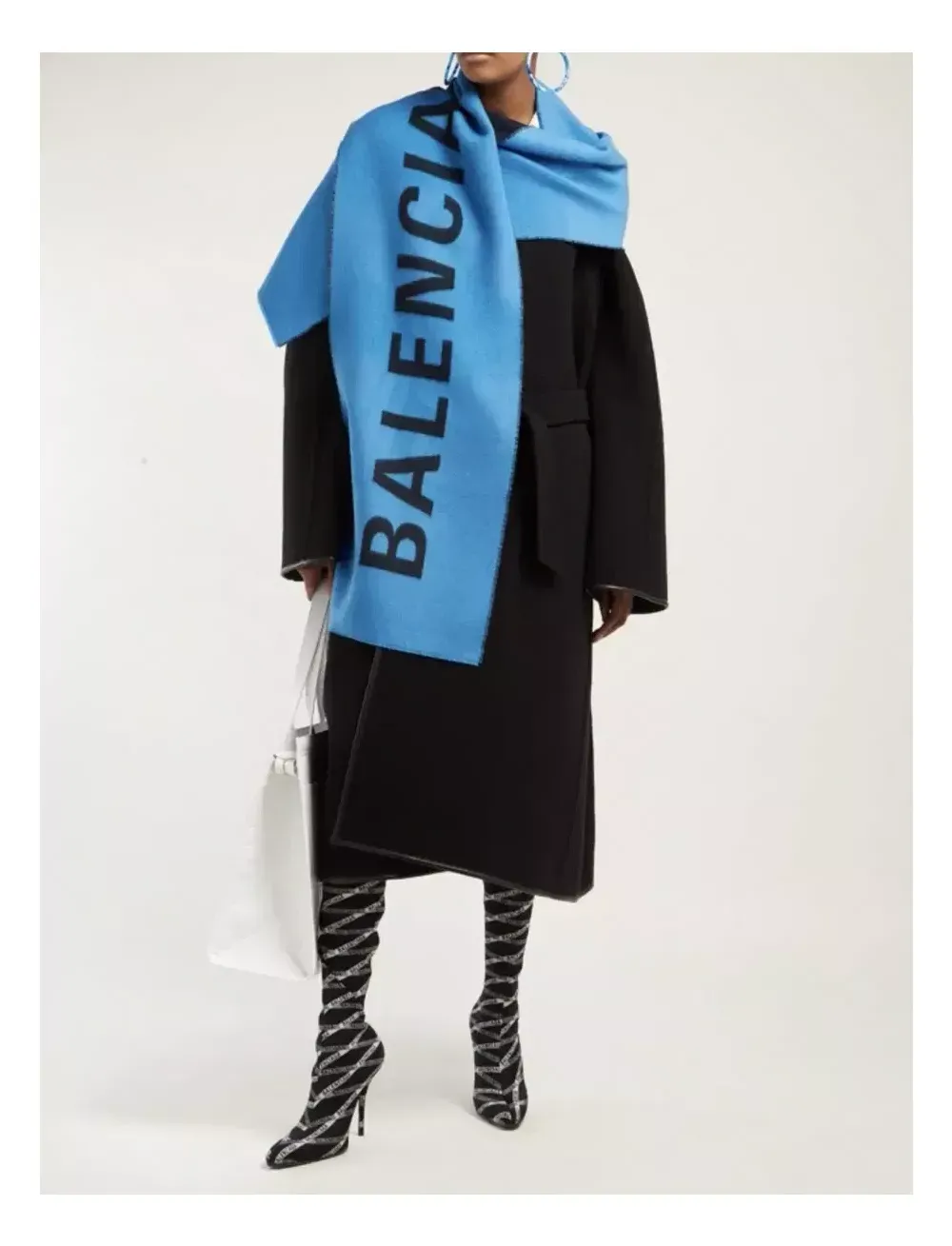 발렌시아가 울 로고 머플러 블루