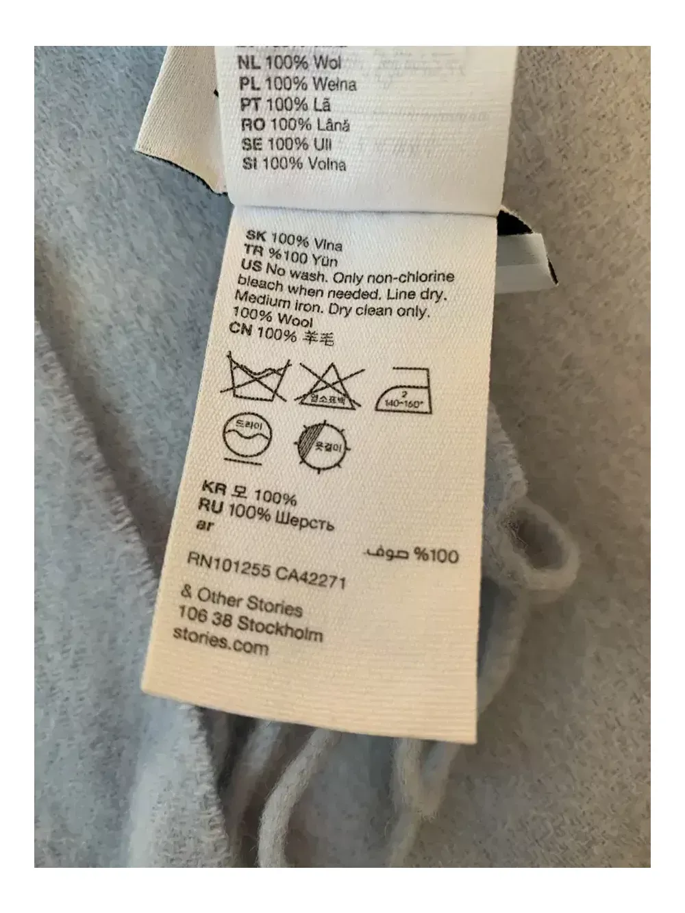 앤아더스토리즈 울 프린지 머플러 라이트블루 입니다. 182 48 입니다 :)