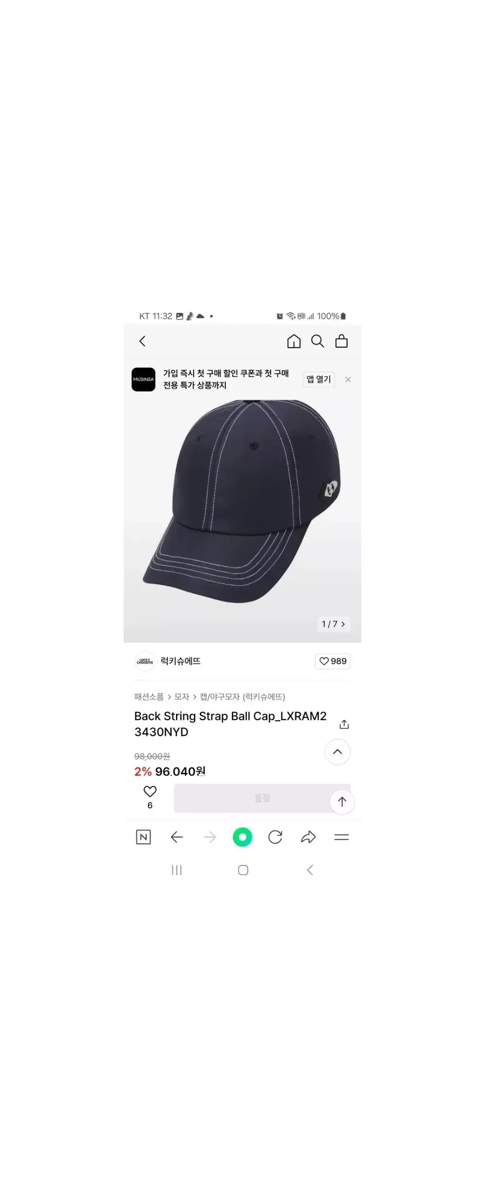 럭키슈에뜨 캡 야구모자 사이즈~프리 선물받았는데 거의 착용안해서 새거상태여요 ~